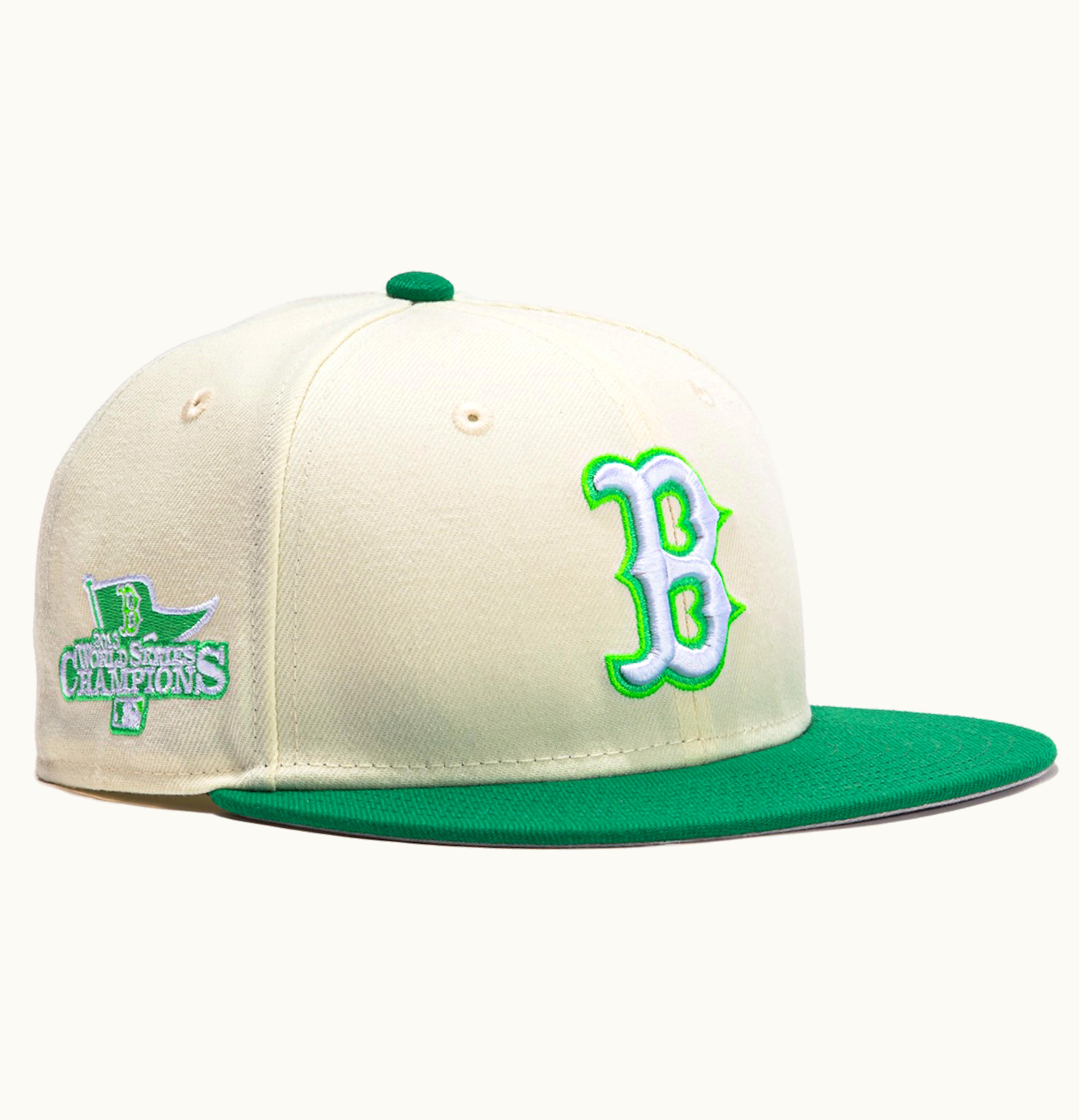 New Era Boston Red Sox Burger Pack 2013 World Series Patch Hat Club Exclusive 59Fifty Fitted Hat White Kelly Green | GLINT