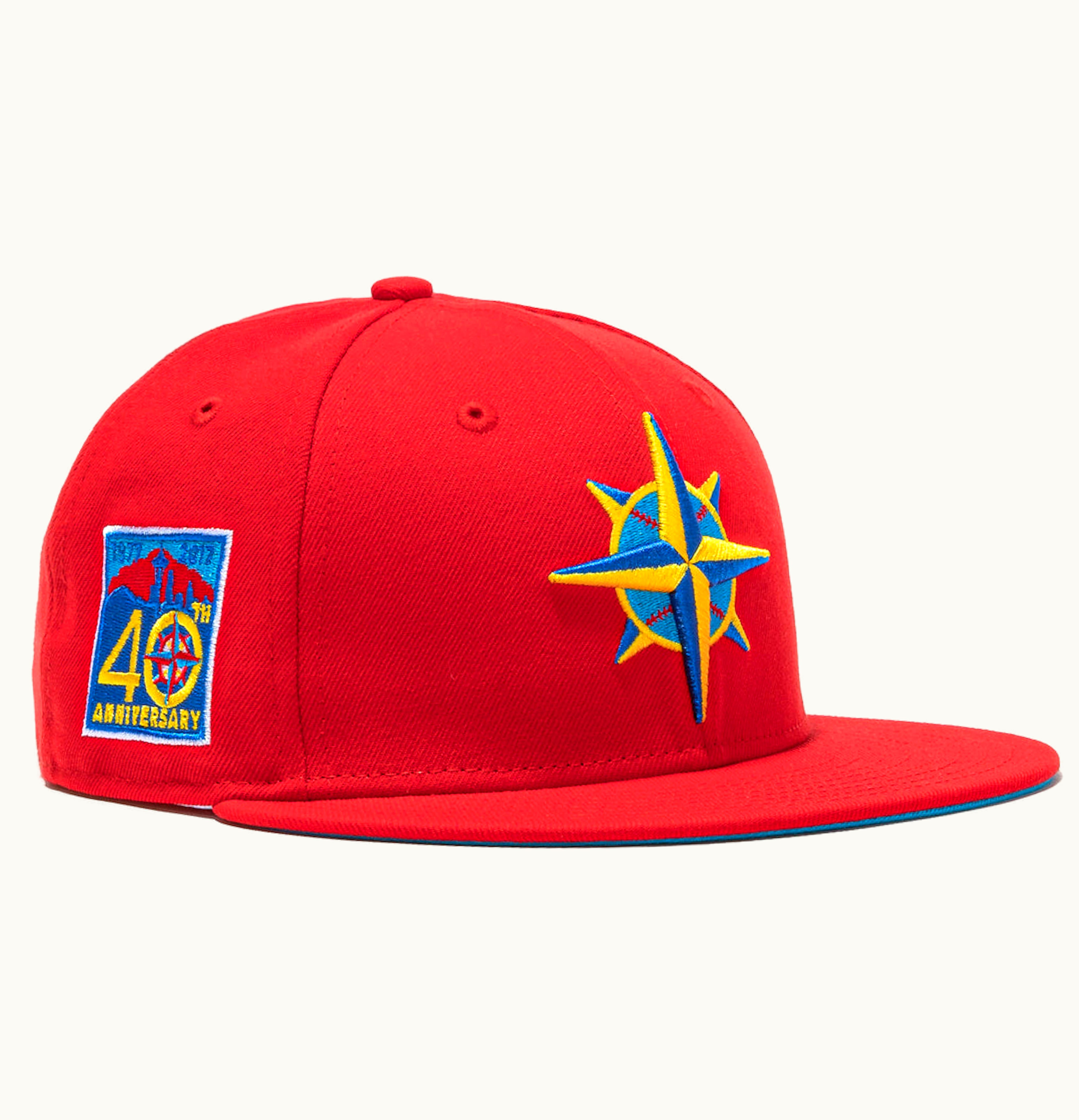 New Era Seattle Mariners Hat Wheels 40th Anniversary Patch Hat Club Exclusive 59Fifty Fitted Hat Red | GLINT