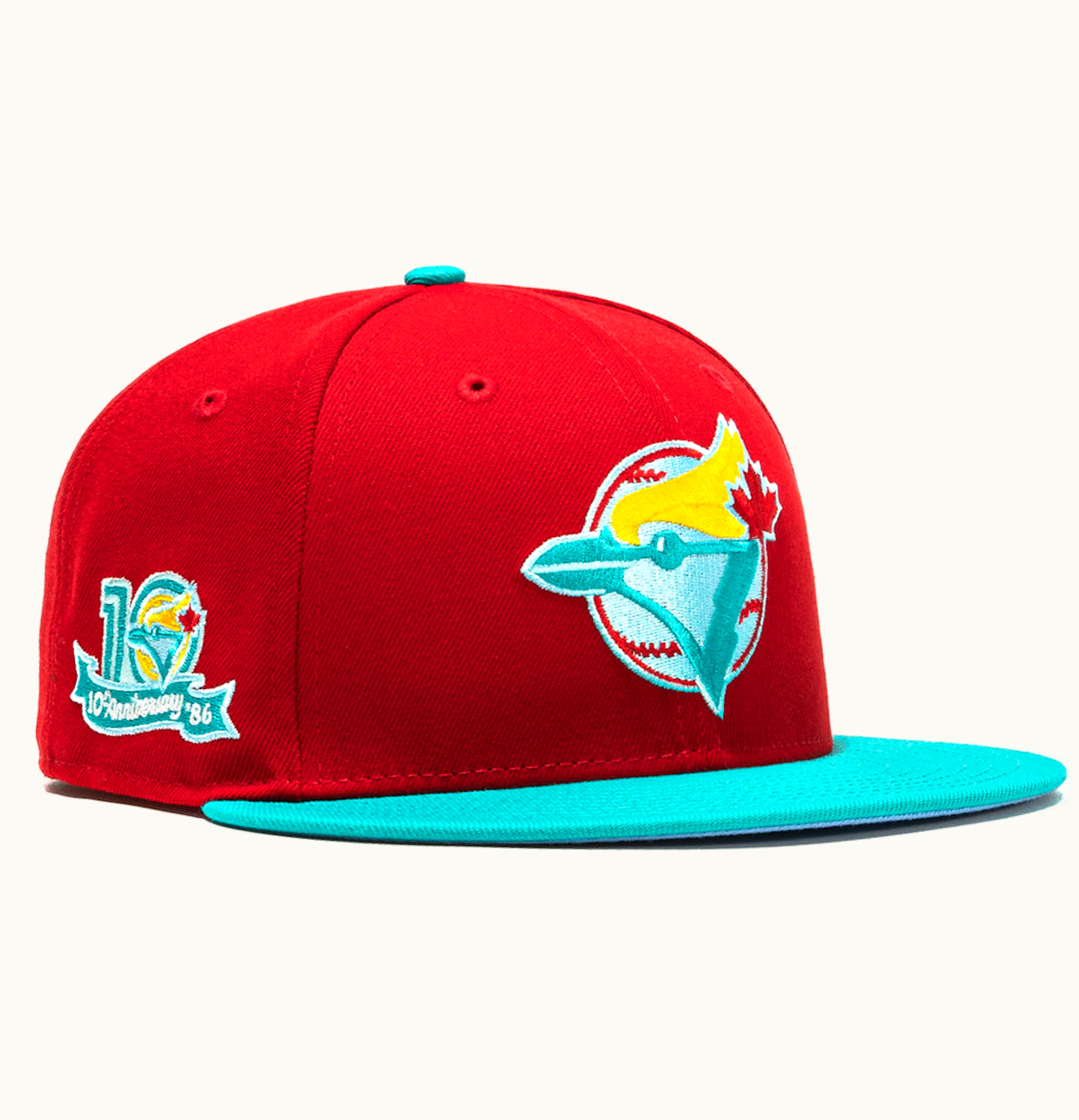 New Era Toronto Blue Jays Captain Planet 20 10th Anniversary Patch Hat Club Exclusive 59Fifty Fitted Hat Red Teal | GLINT