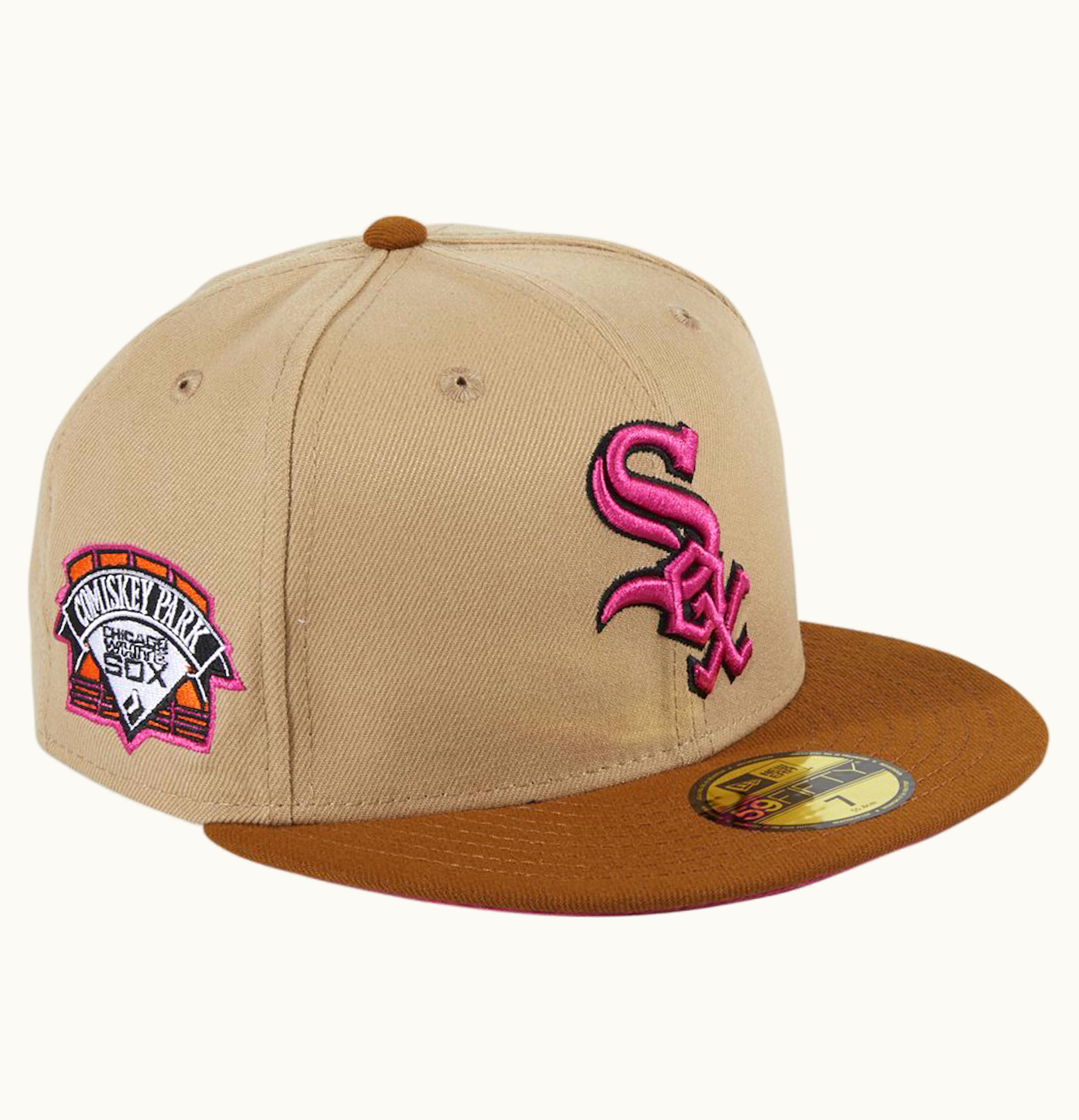 New Era Chicago White Sox PBJ Comiskey Park Patch Hat Club Exclusive 59Fifty Fitted Hat Tan Brown | GLINT
