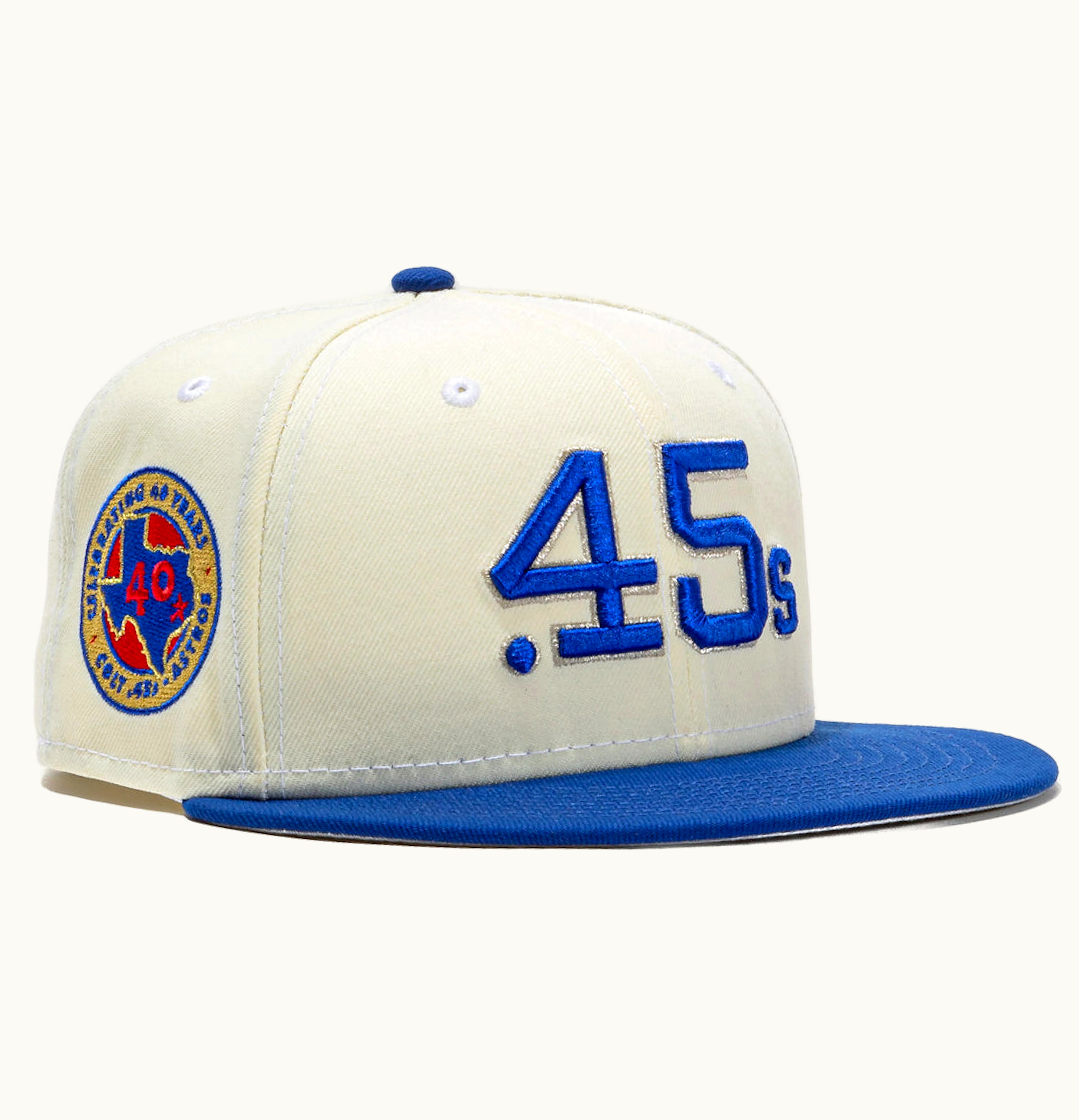 New Era x Hat Club Exclusive Beer Pack Houston Astros Colt 45s 40 Years Patch 59Fifty Fitted Hat White Royal | GLINT