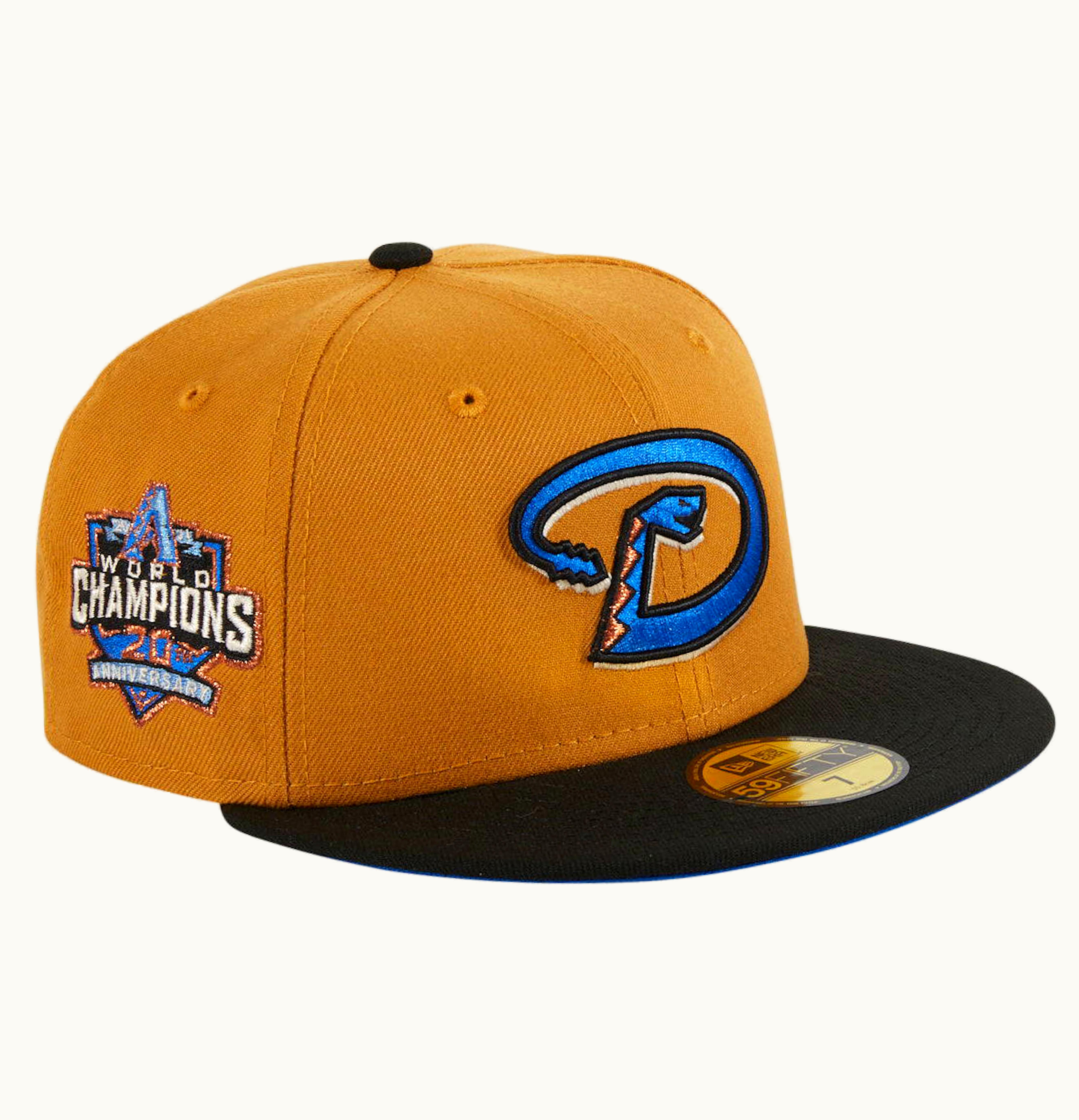 New Era Arizona Diamondbacks Ancient Egypt 20th Anniversary Champs Hat Club Exclusive 59Fifty Fitted Hat Khaki Black Royal Blue | GLINT
