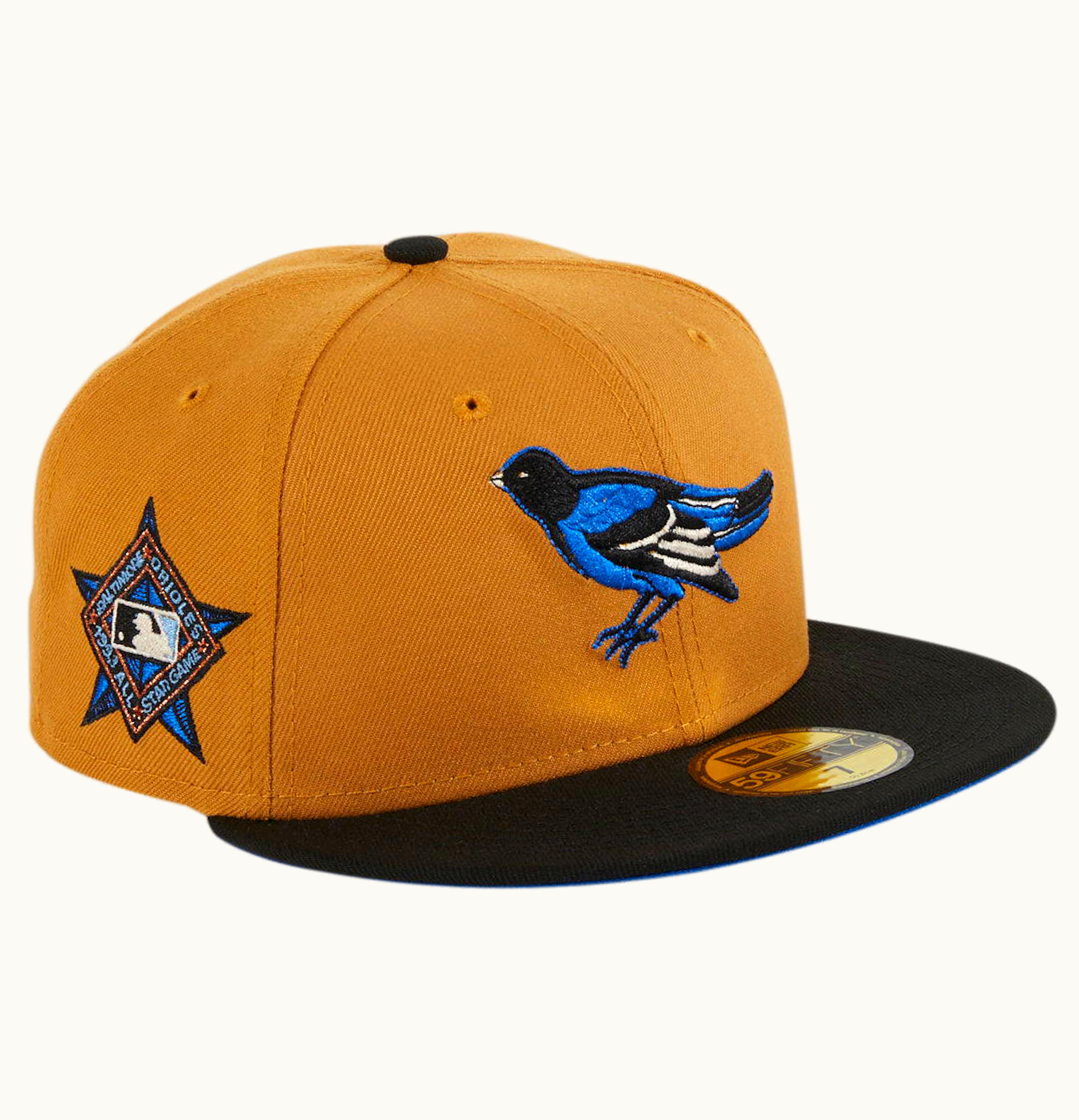 New Era Baltimore Orioles Ancient Egypt 1993 ASG Hat Club Exclusive 59Fifty Fitted Hat Khaki Black Royal Blue | GLINT