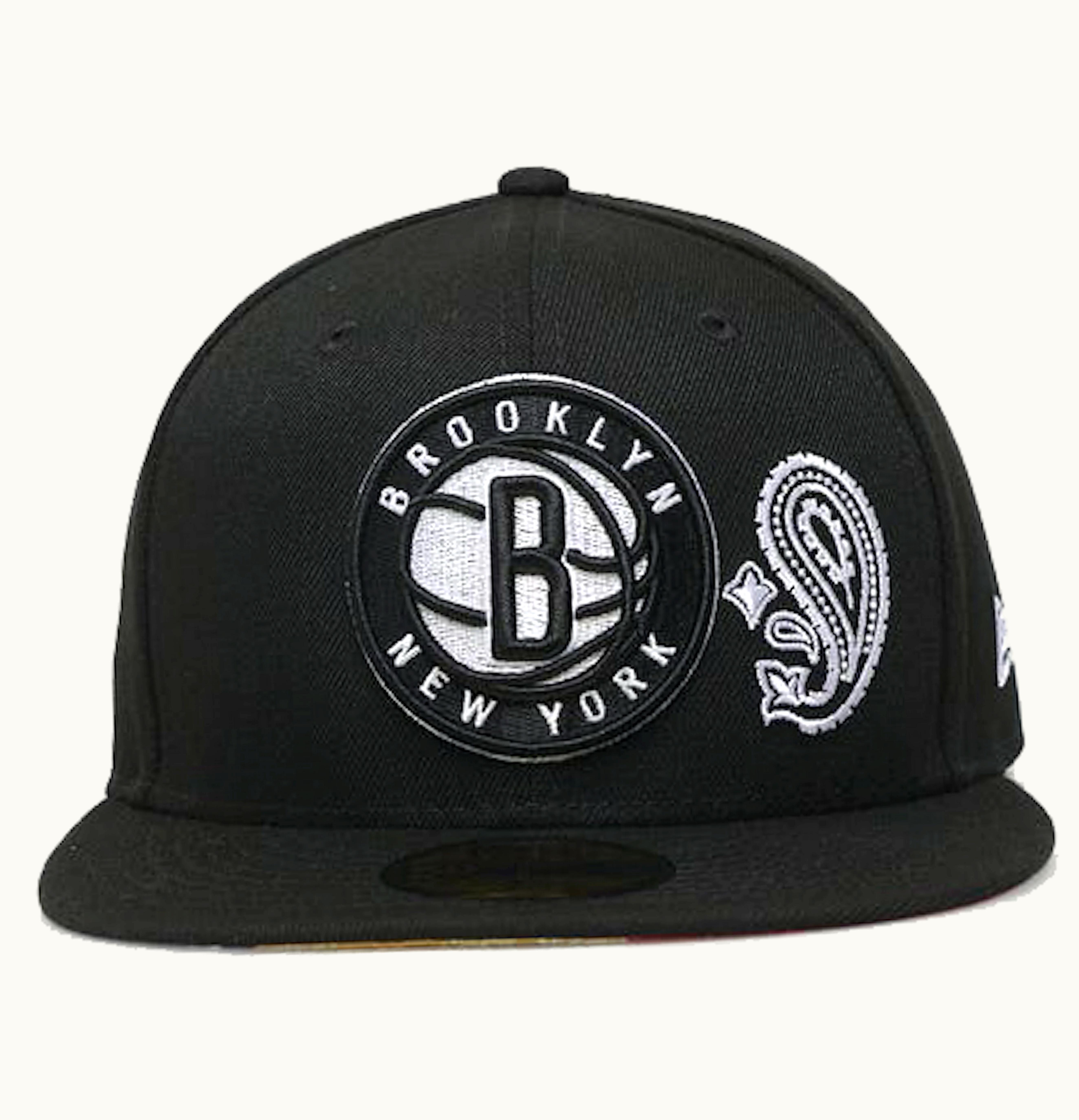 New Era Brooklyn Nets Patchwork Paisley Undervisor 59Fifty Fitted Hat Black | GLINT