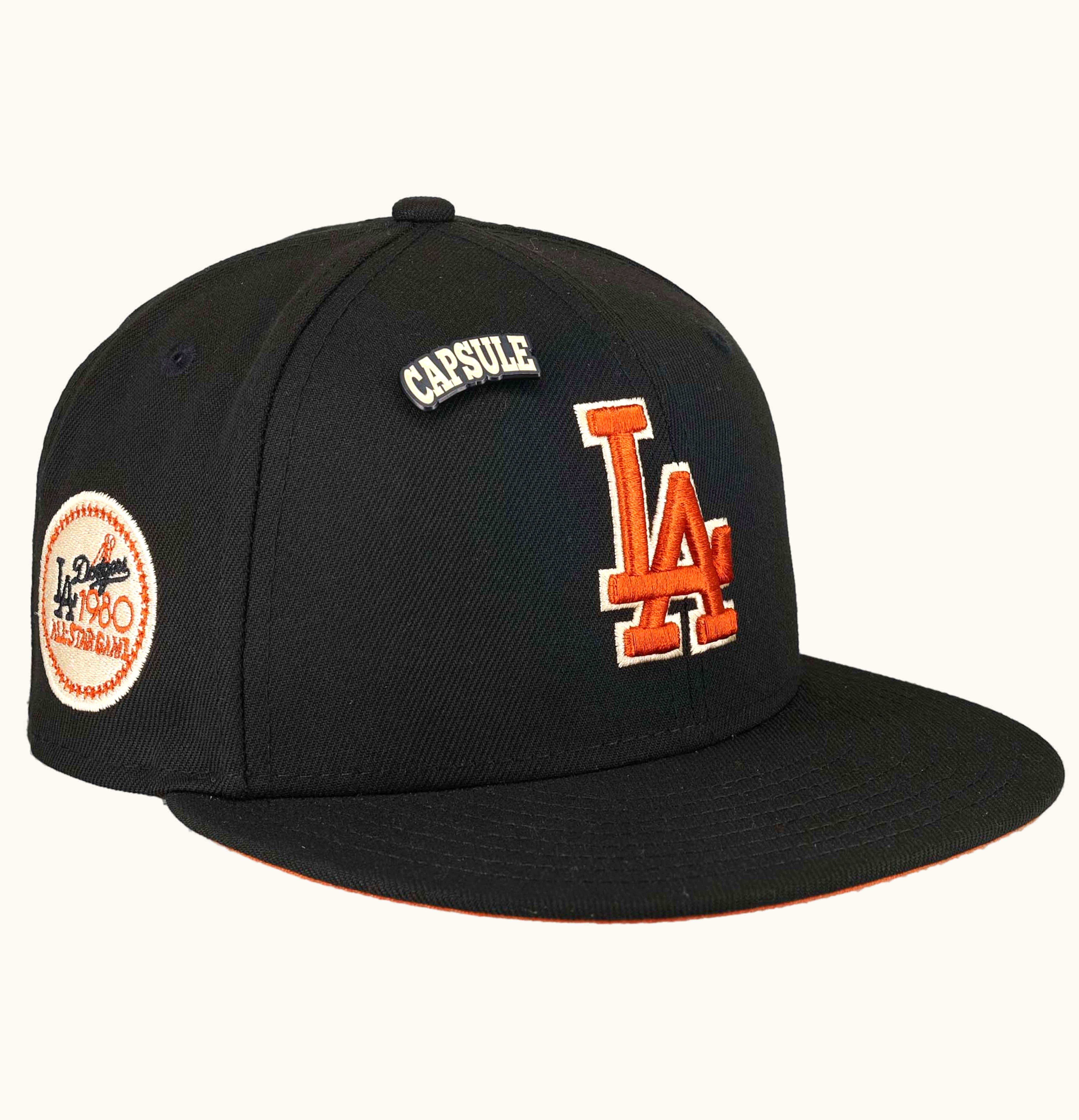 New Era Los Angeles Dodgers Capsule Colors in Cream 1980 All Star Game Patch 59Fifty Fitted Hat Black Orange | GLINT