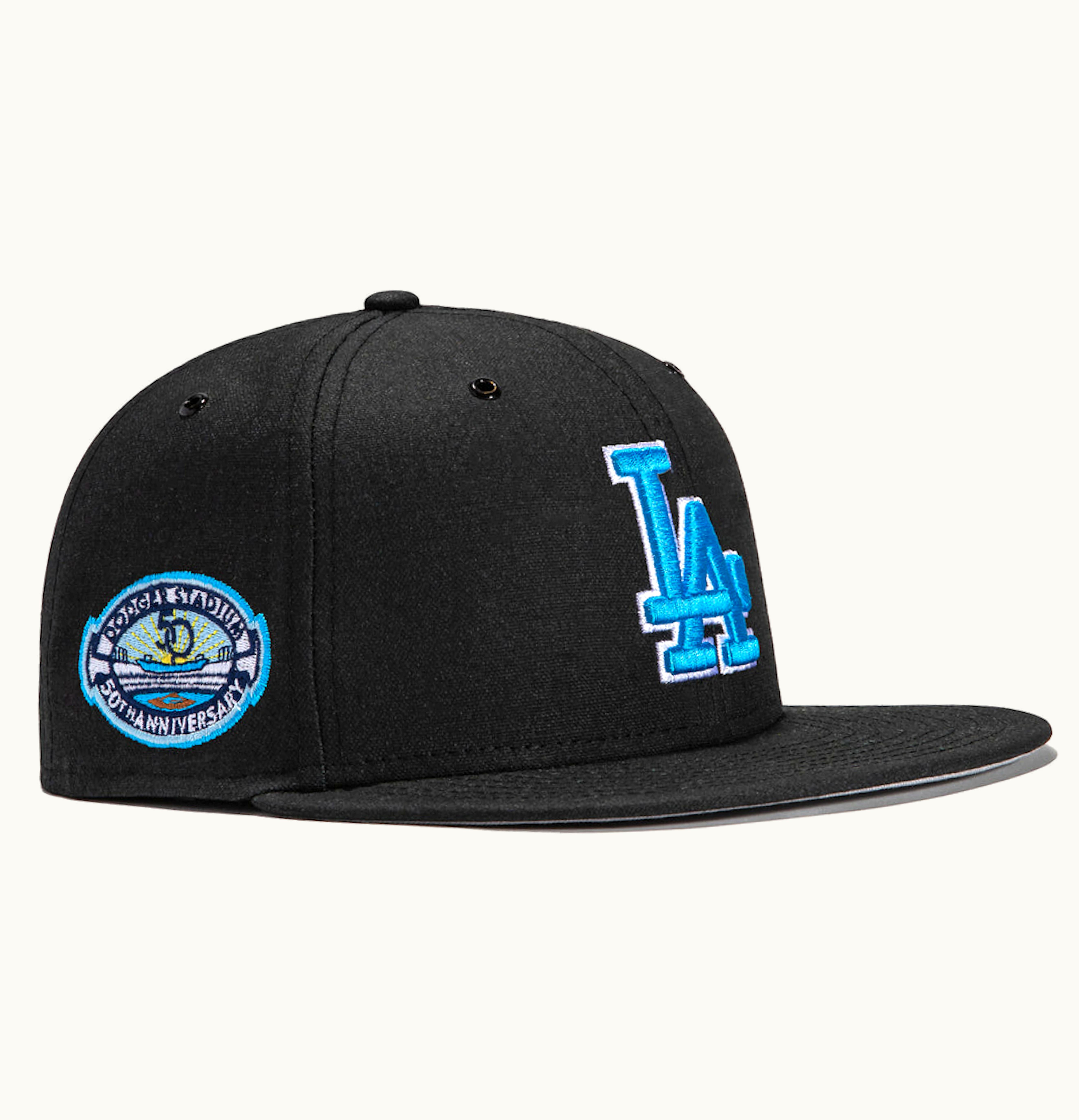 New Era x Hat Club Exclusive Aux Pack Vinyl Los Angeles Dodgers 50th Anniversary Stadium Patch 59Fifty Fitted Hat Black | GLINT