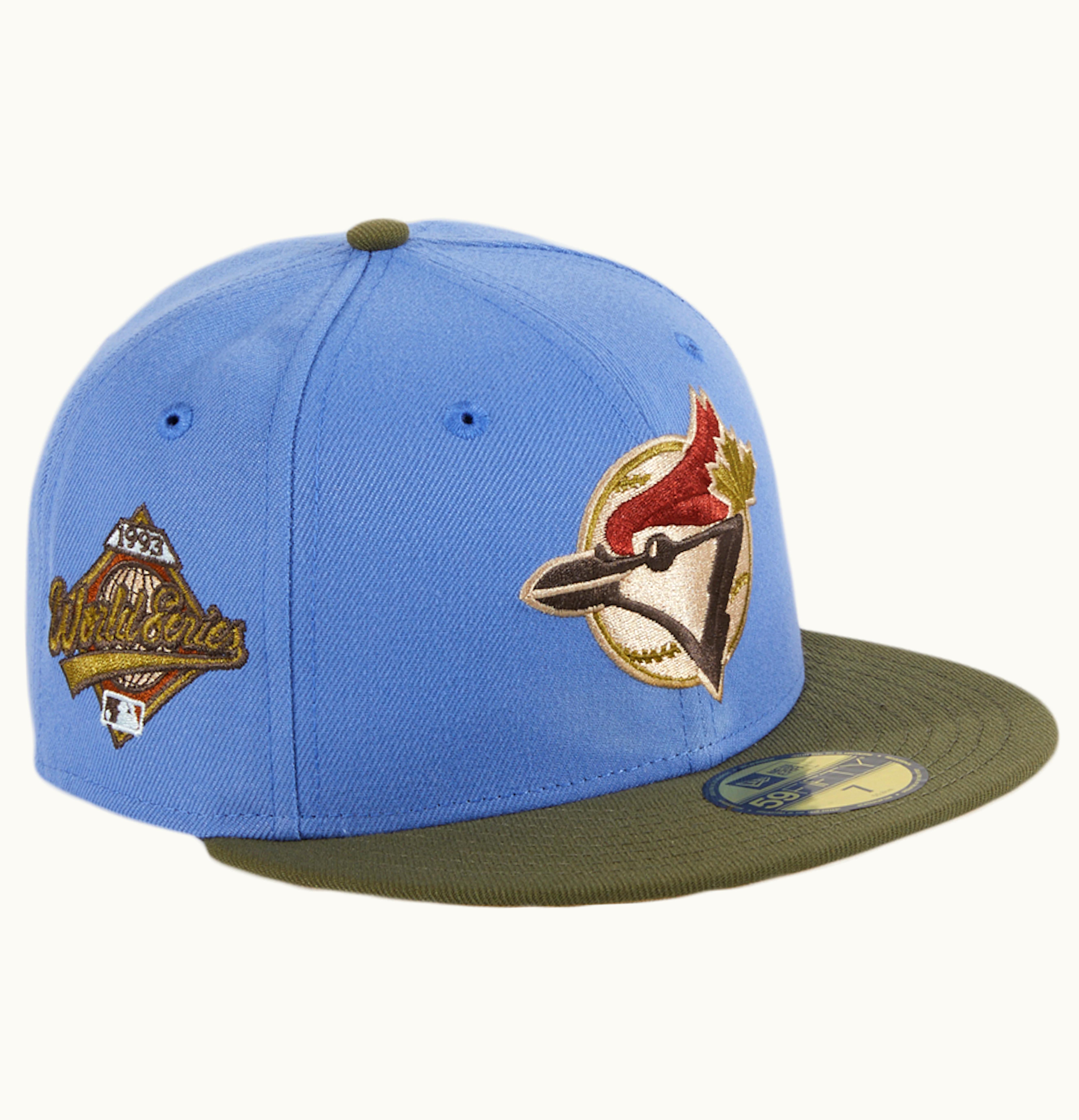 New Era Toronto Blue Jays Great Outdoors 1992 World Series Patch Hat Club Exclusive 59Fifty Fitted Hat Indigo Olive | GLINT