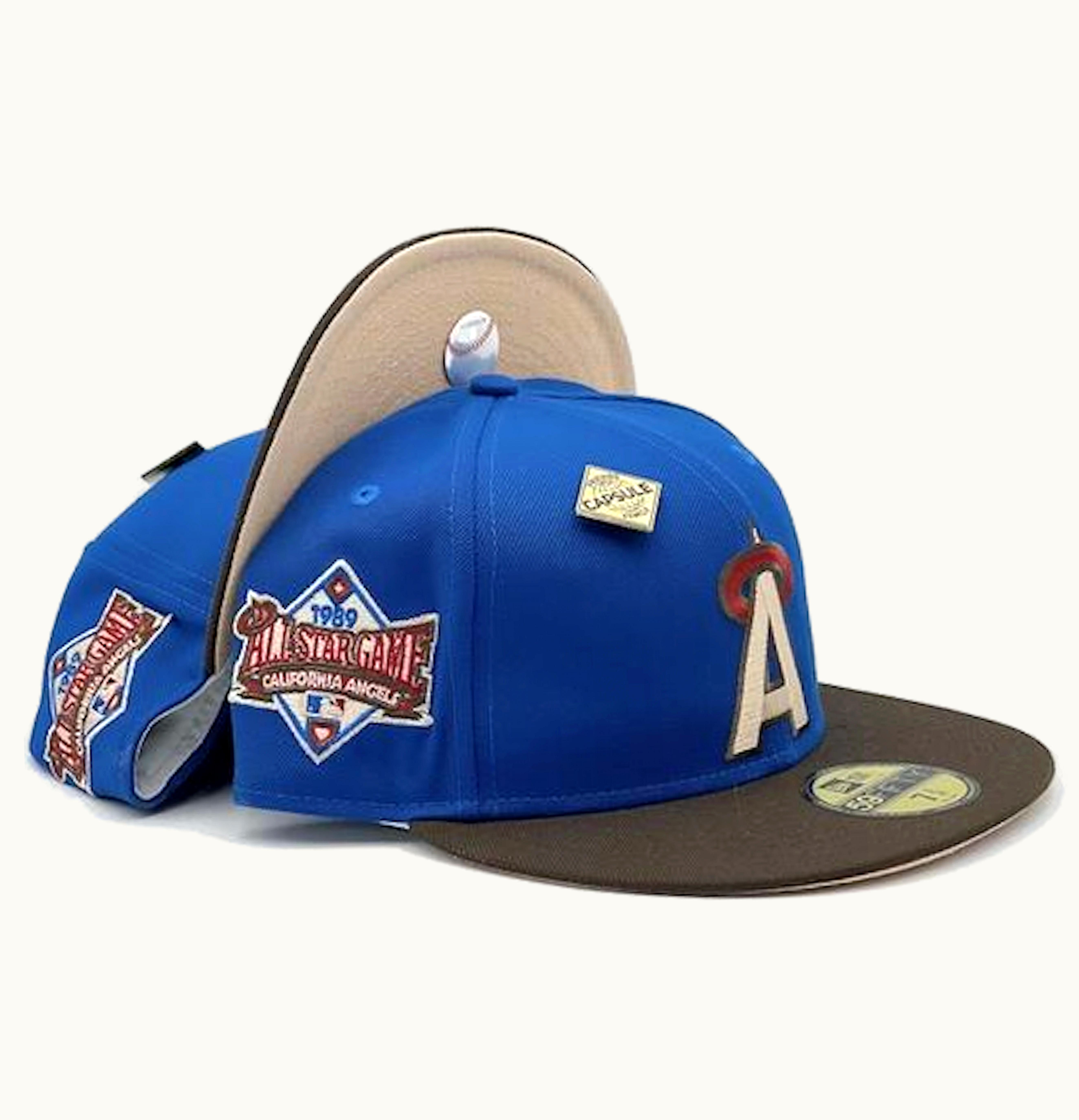 New Era California Angels Blue Nitro Collection Friends and Family 1989 All Star Game Capsule Hats Exclusive 59Fifty Fitted Hat Blue Peach | GLINT