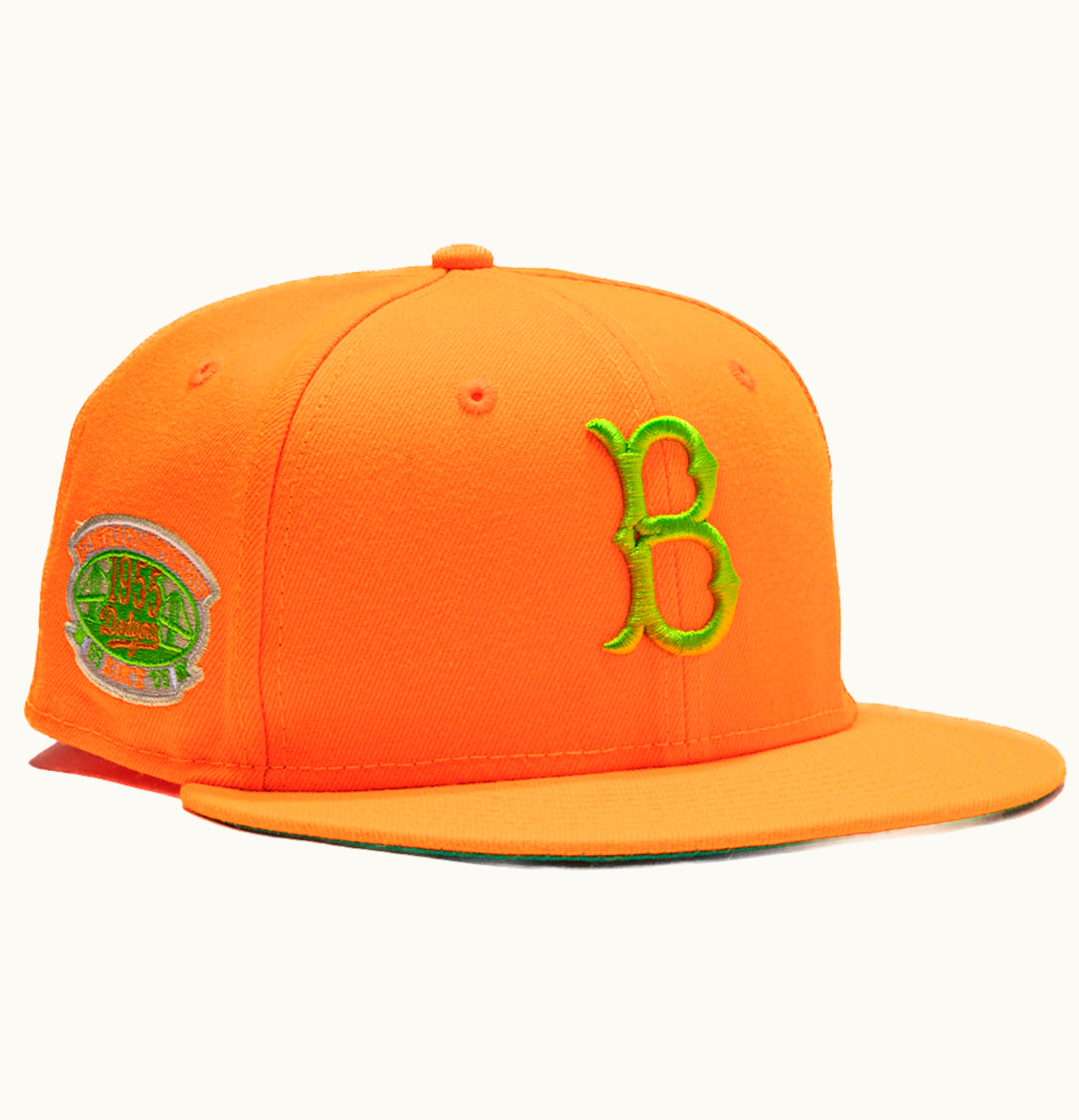 New Era Brooklyn Dodgers Aux Pack 1955 World Series Patch Hat Club Exclusive 59Fifty Fitted Hat Light Orange | GLINT