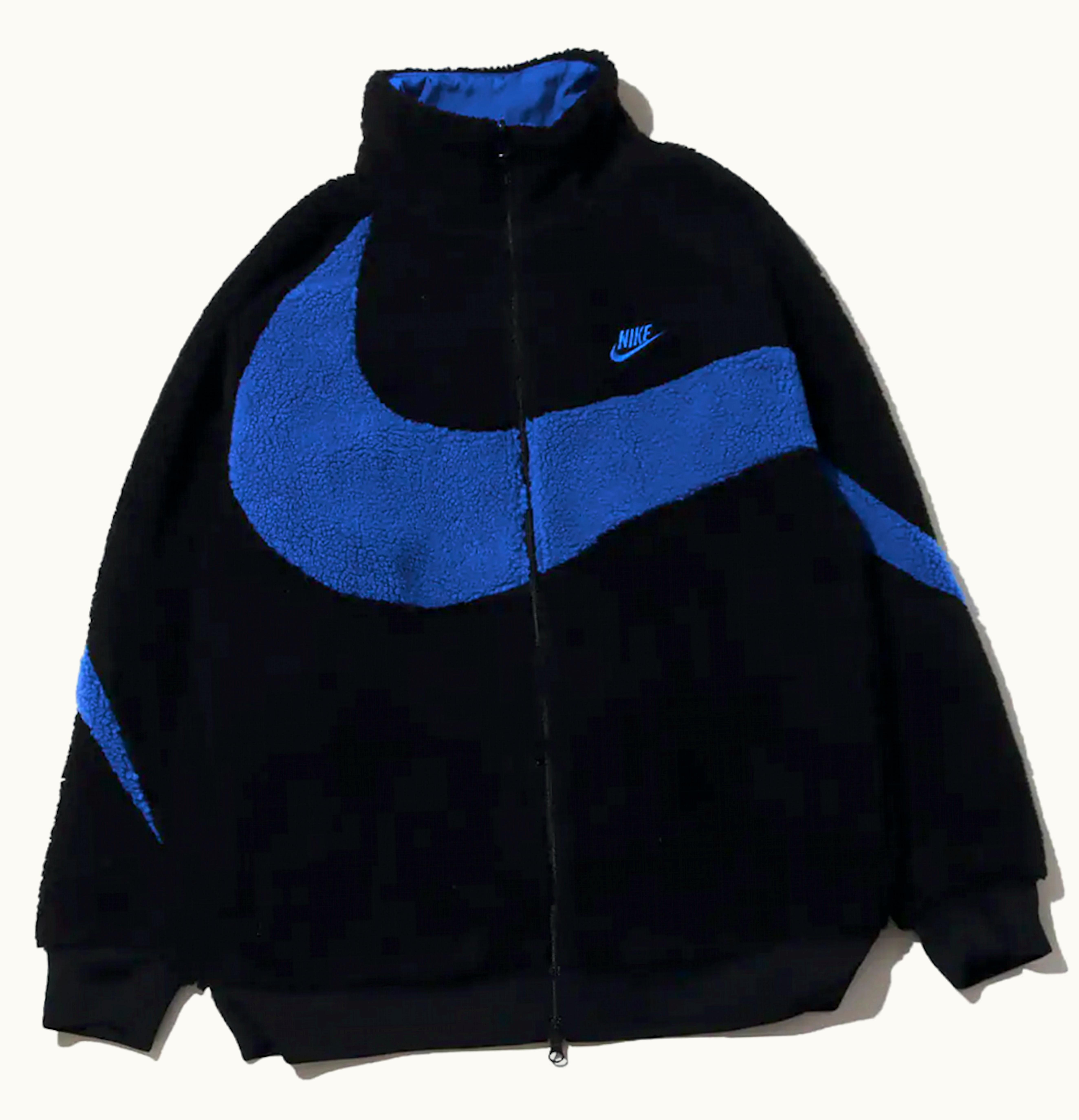 Nike Big Swoosh Reversible Boa Jacket Asia Sizing Black Game Royale | GLINT