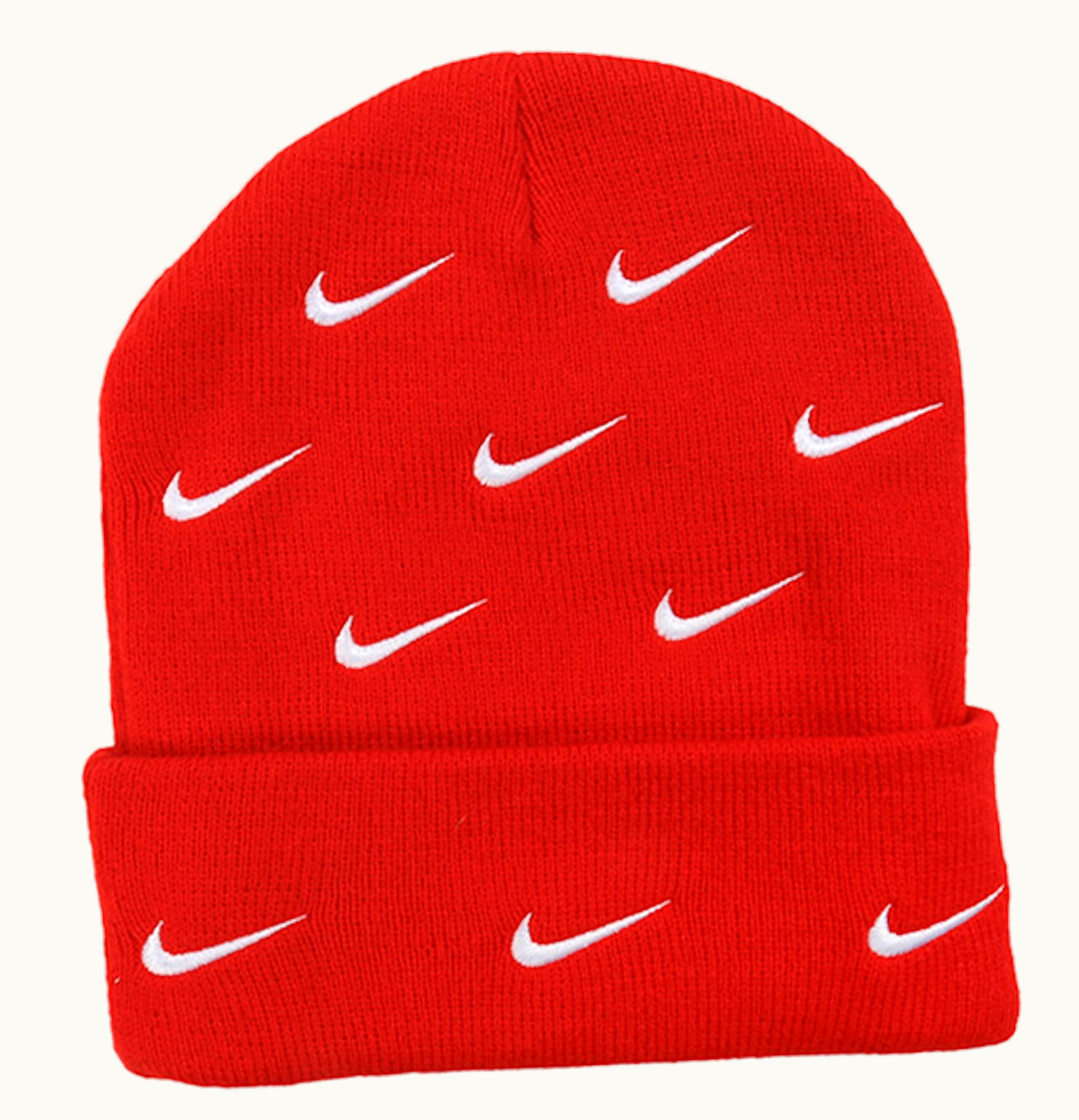 The Nike All Over Swoosh Logo Cuffed beanie is perfect for keeping you warm and stylish during the colder months. Made with a soft and cozy knit fabric, this beanie features an all-over Nike swoosh logo pattern for added flair. The cuffed design provides a secure and snug fit, while the fold-over brim offers extra coverage and warmth for your ears. Whether you're running errands or hitting the slopes, this Nike beanie will keep you looking and feeling great.
