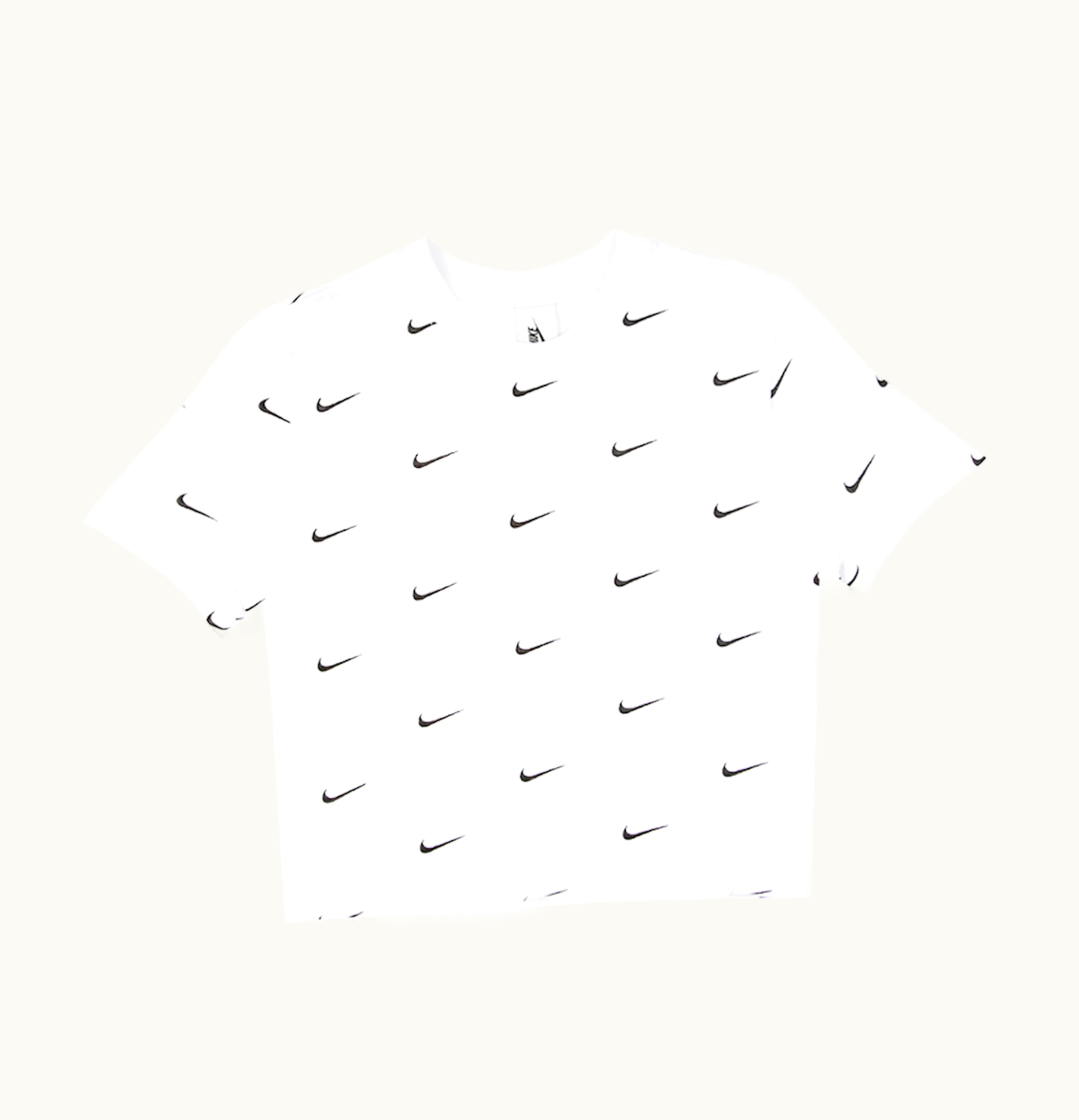 Nike All Over Swoosh Logo Cropped T Shirt White | GLINT