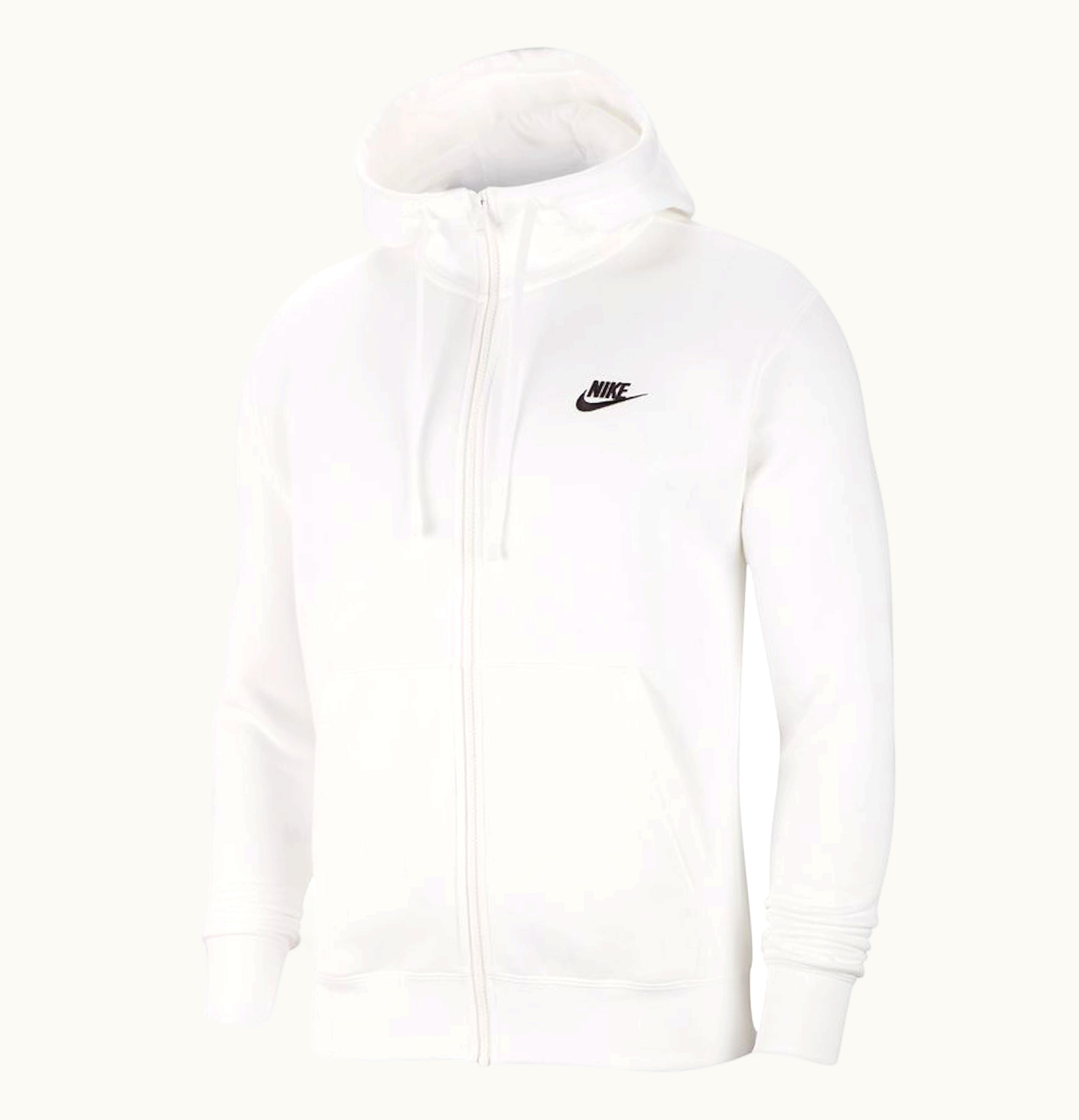 Nike Sportswear Club Fleece Full Zip Hoodie White White Black | GLINT