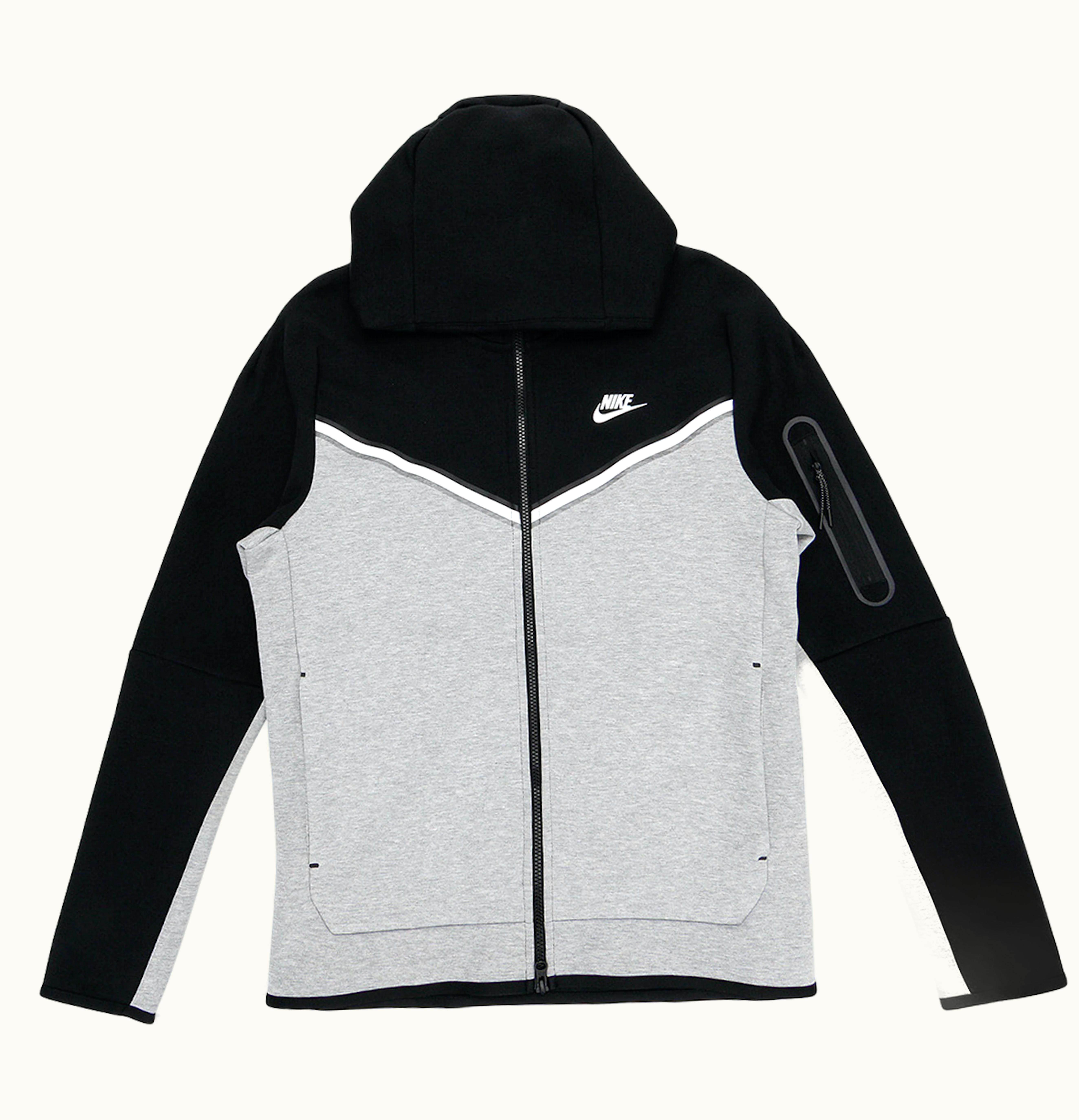 Nike Tech Fleece Full Zip Hoodie Black Dark Grey Heather White | GLINT