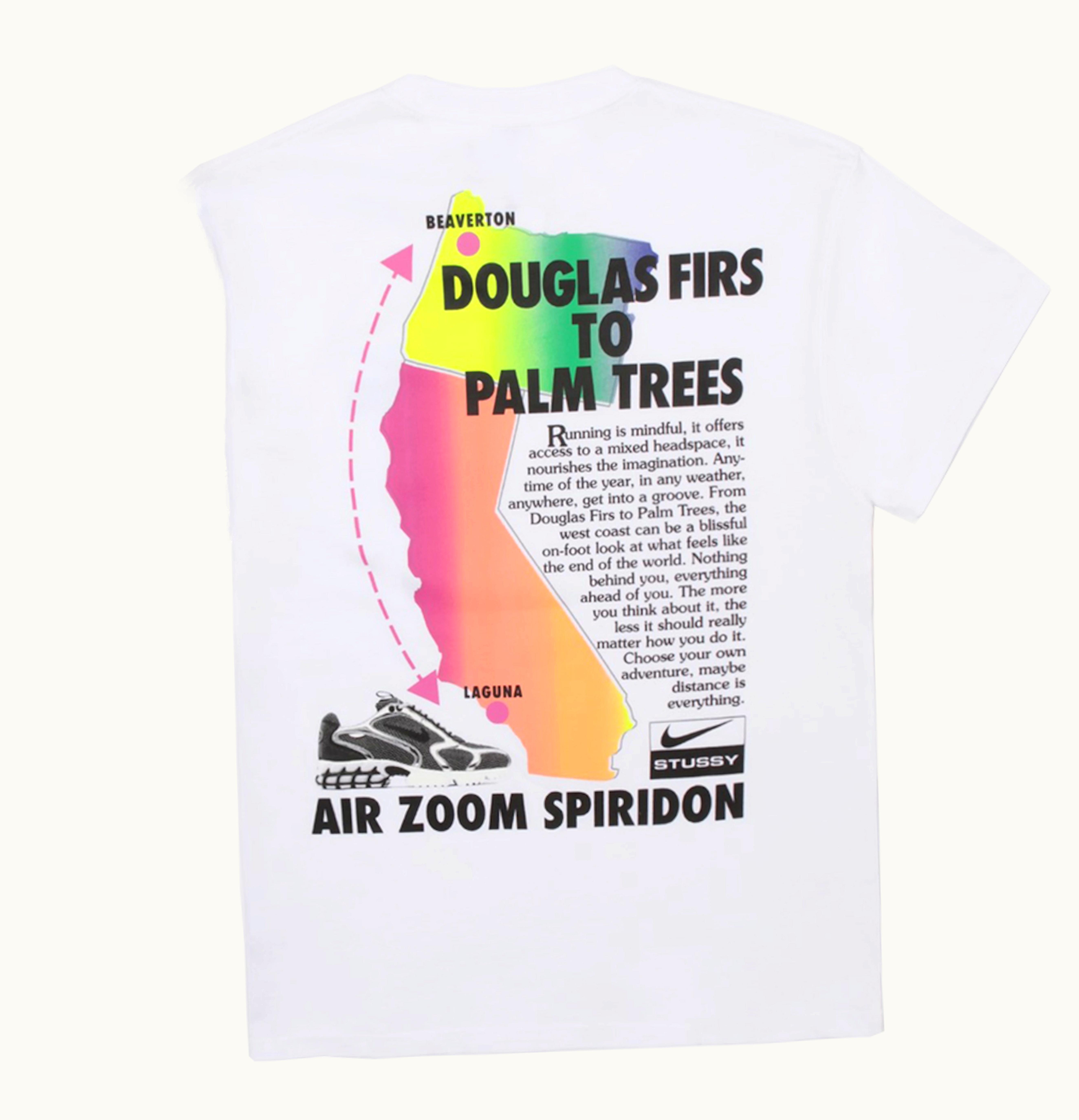 Nike x Stussy Air Zoom Spiridon Douglas Firs To Palm Trees T shirt White Multi | GLINT