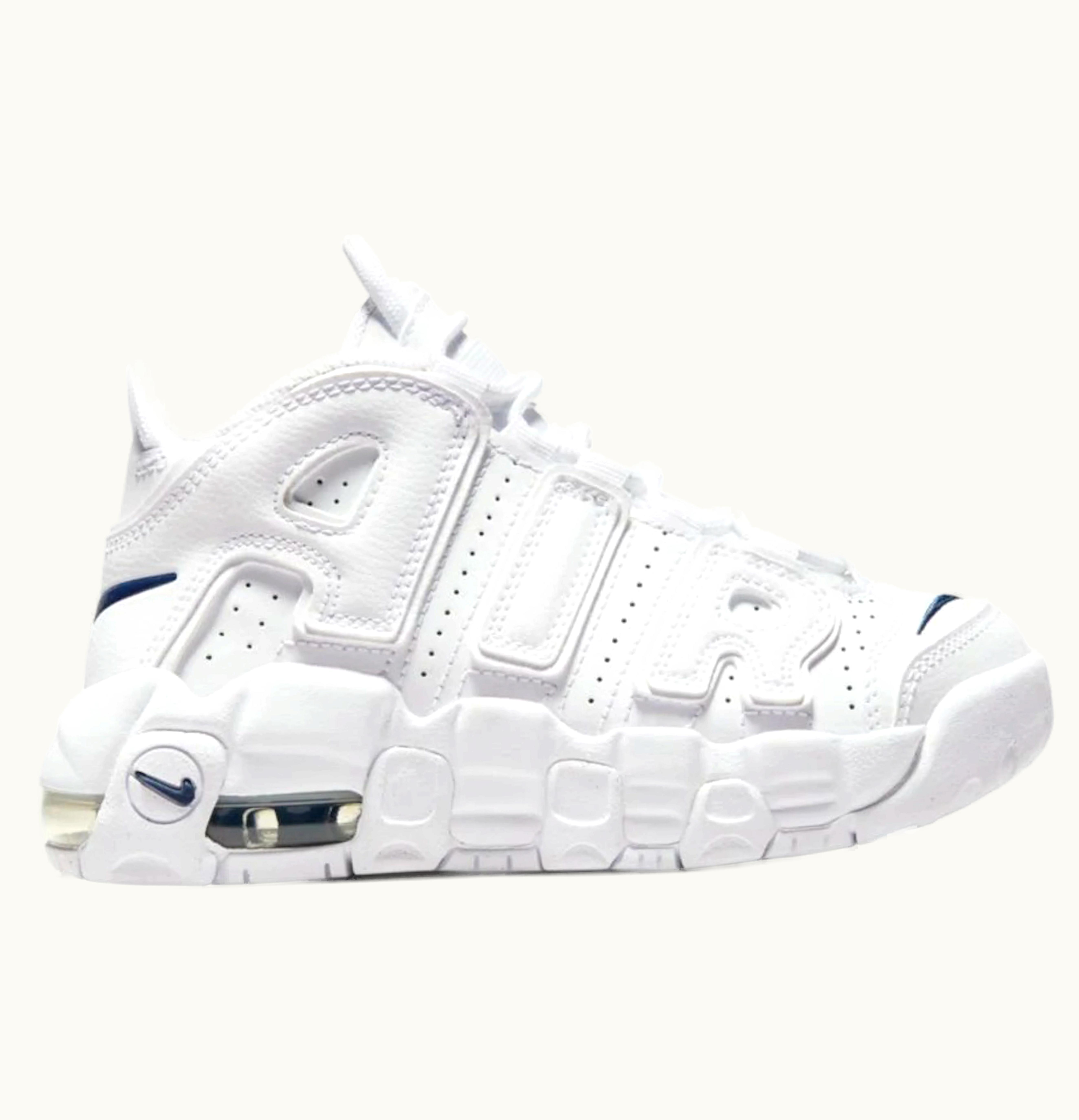 Nike Air More Uptempo White Navy Swoosh PS | GLINT