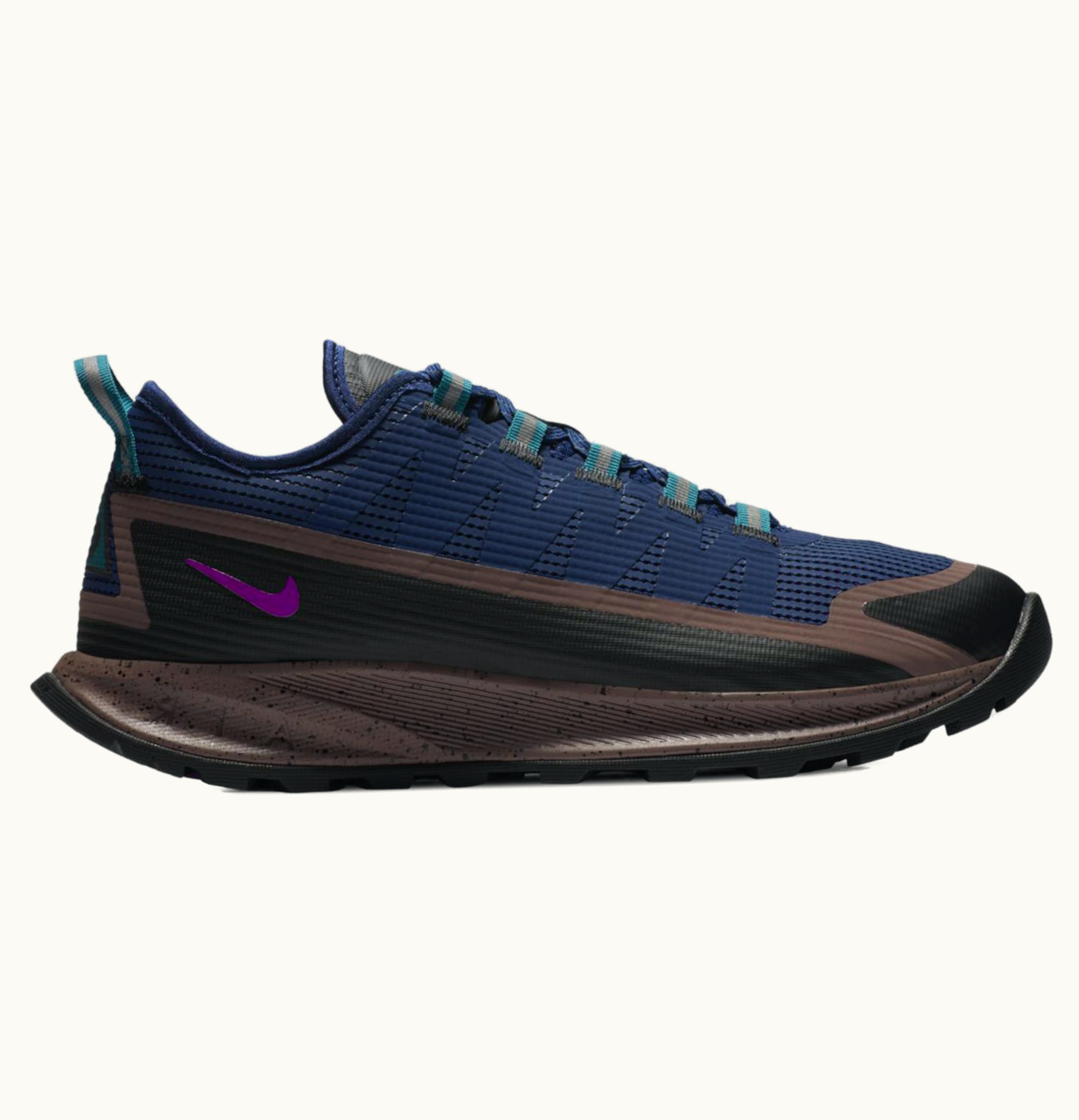 Nike ACG Air Nasu Blue Void is a pair of durable trail shoes designed for outdoor adventures. The upper is made of a combination of mesh and synthetic materials to provide breathability, support, and protection from debris. The shoes feature a rugged, sticky rubber outsole that provides traction and durability on a variety of terrain. The Phylon midsole offers cushioning and comfort, while the reinforced toe and heel provide extra protection. The lace-up closure ensures a secure and customizable fit. The shoes are finished with Nike's ACG (All Conditions Gear) branding on the tongue and heel. They are available in a striking blue void colorway, which adds a touch of style to their functional design. Overall, Nike ACG Air Nasu Blue Void is the perfect choice for anyone looking for a reliable and stylish trail shoe that can handle a range of outdoor activities.