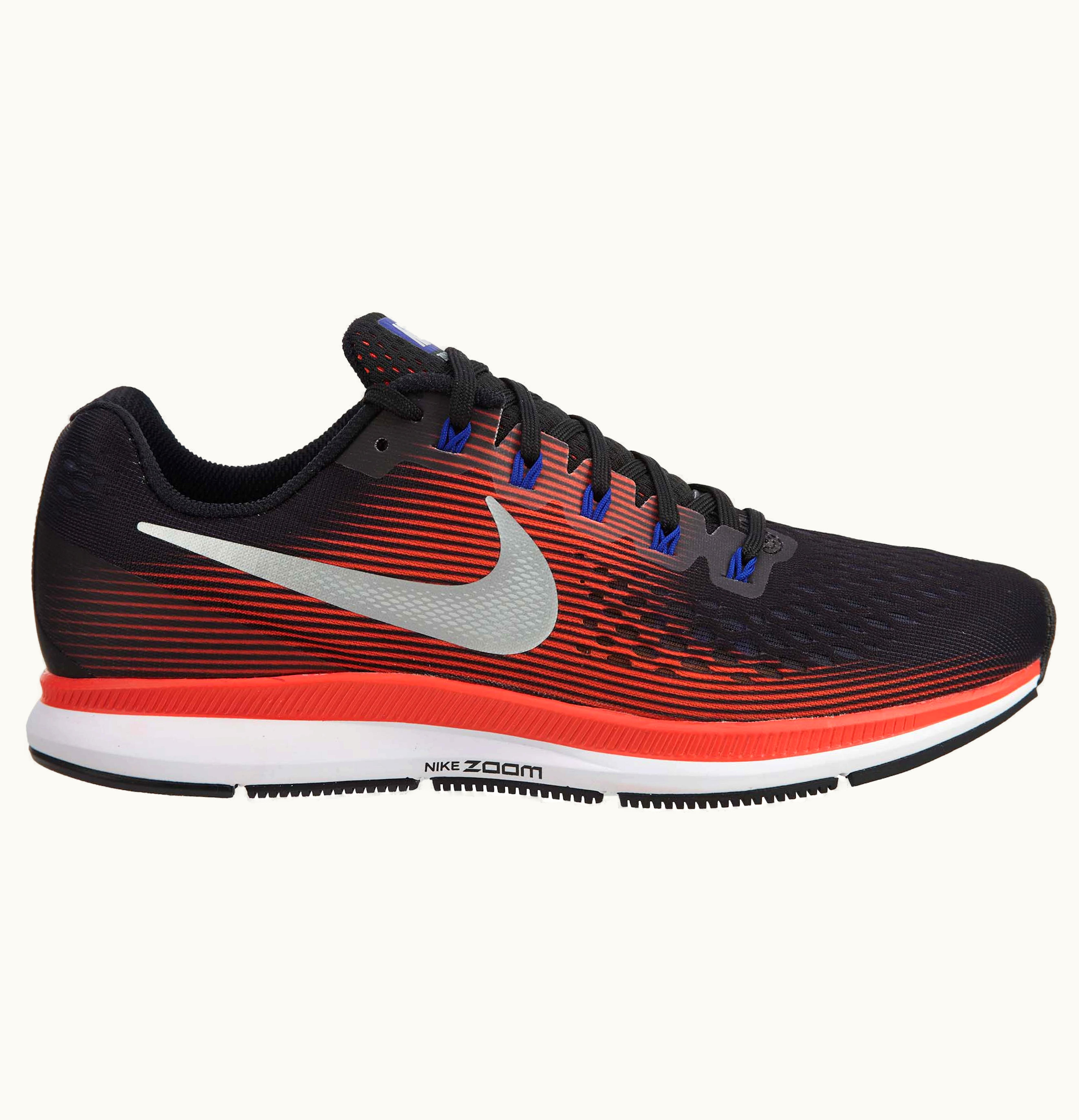 Nike Air Zoom Pegasus 34 Black Metallic Silver Bright Crimson | GLINT