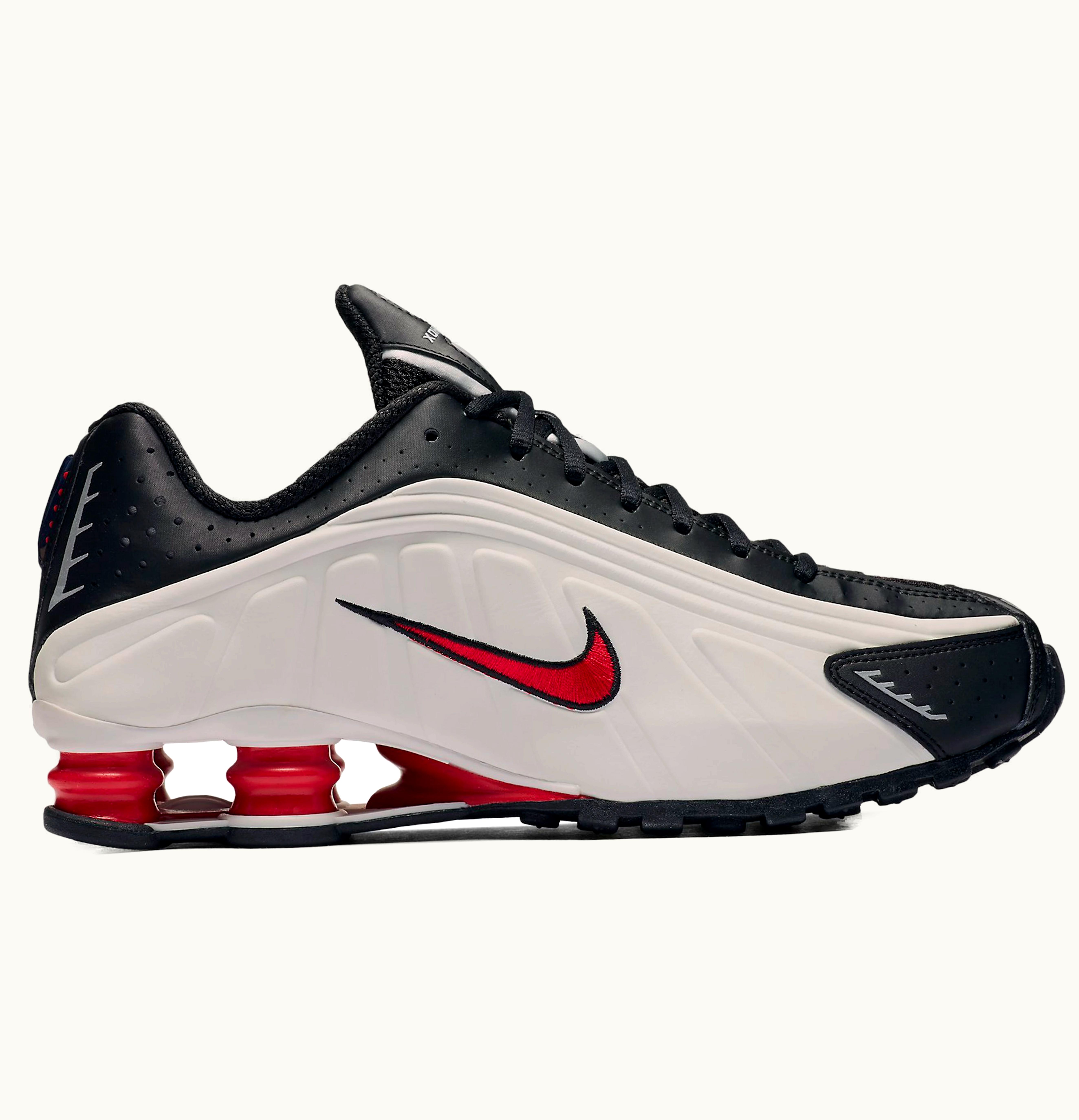 Nike Shox R4 Platinum Tint University Red Black | GLINT