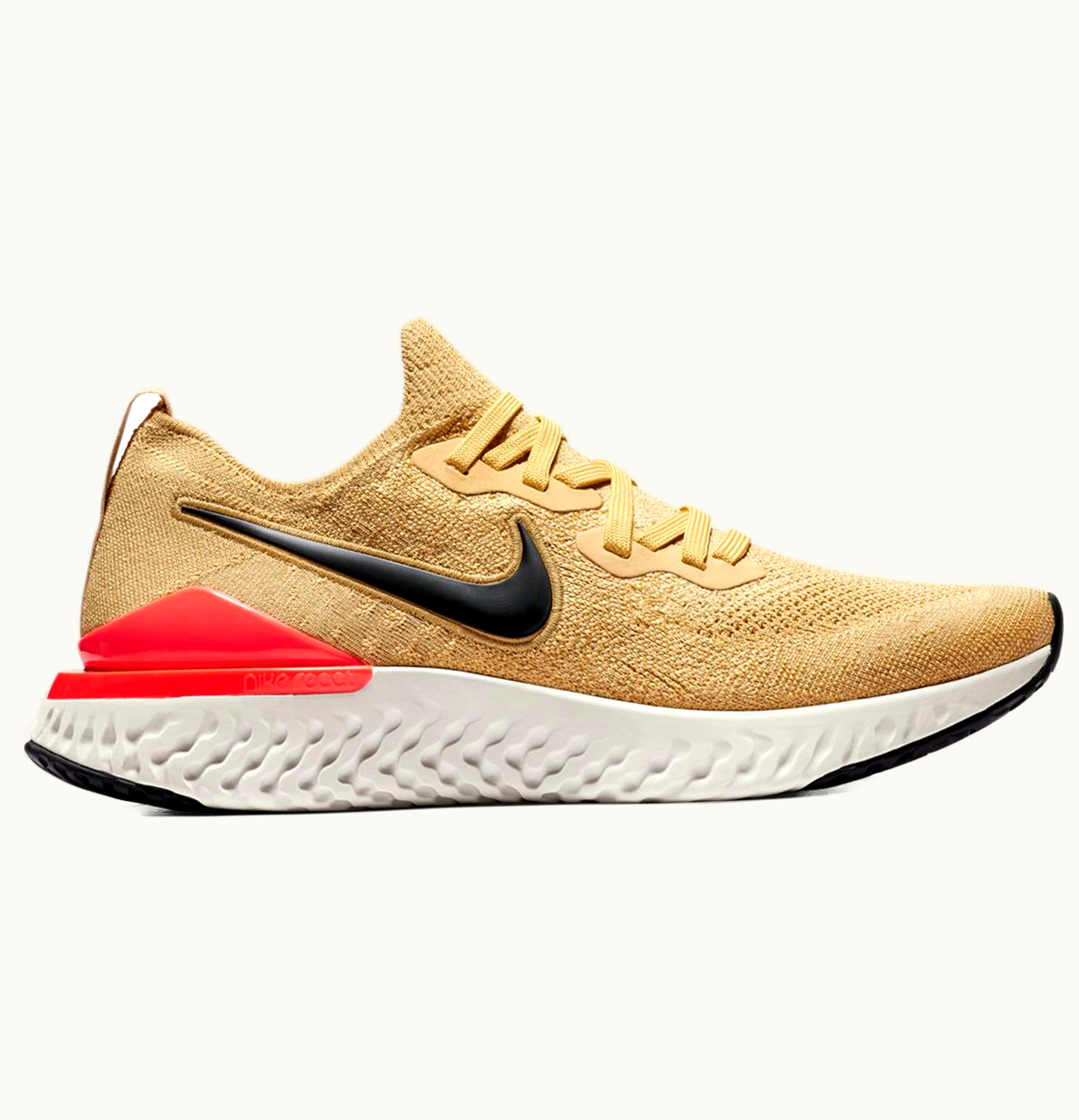 Nike Epic React Flyknit 2 Club Gold Black Red Orbit | GLINT