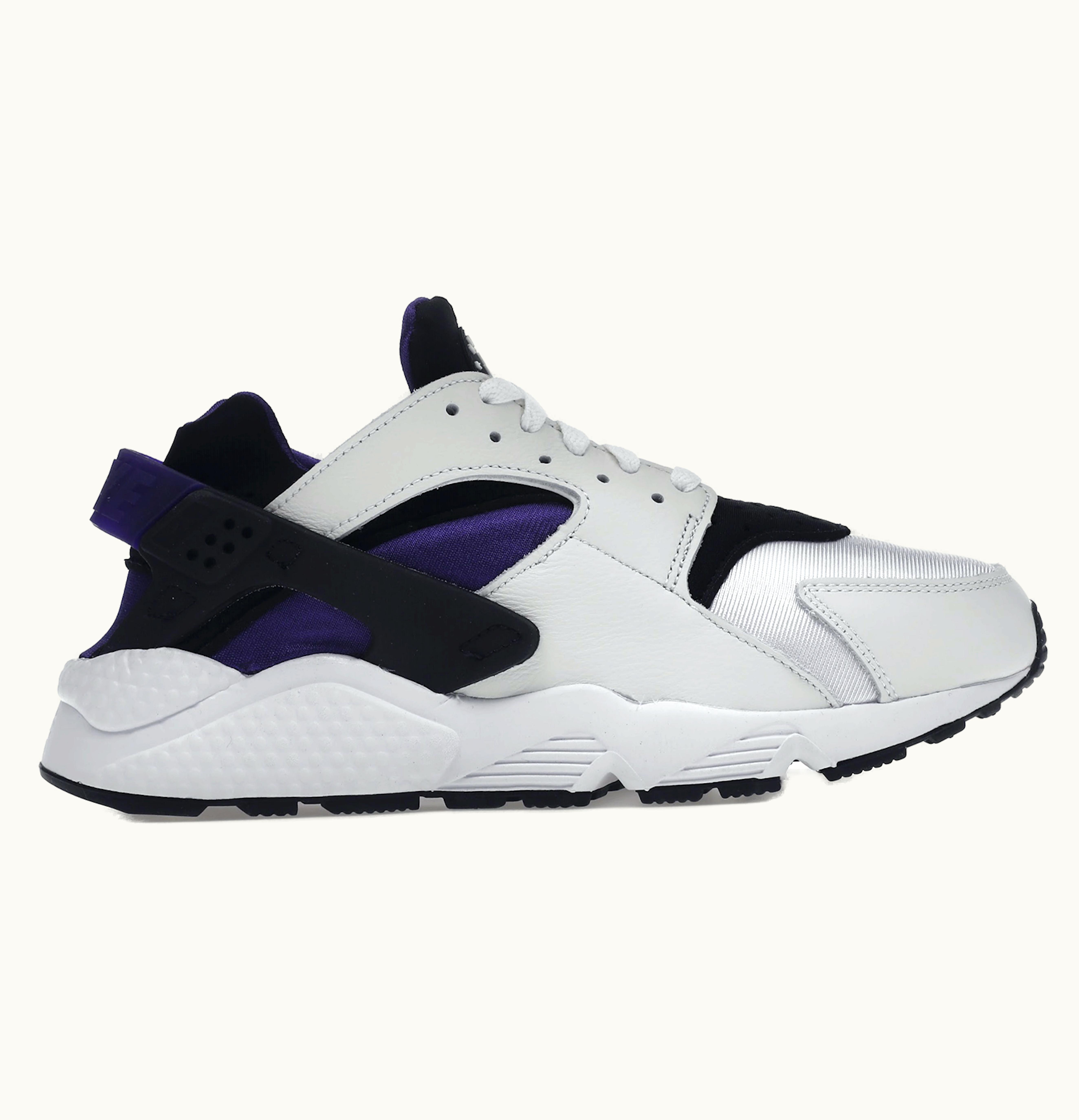 The Nike Air Huarache OG Purple Punch (W) is a stylish and comfortable shoe designed for women. The upper is made of leather and synthetic materials with a black base and purple accents. It features the iconic neoprene bootie construction with a heel strap that adds stability and support. The sole is made of Phylon foam with Nike Air cushioning for a comfortable step, and a rubber outsole that offers traction and durability. The purple punch colorway adds a pop of color to any outfit, making these shoes a great addition to your sneaker collection. Overall, the Nike Air Huarache OG Purple Punch (W) offers a unique blend of style and comfort that makes it perfect for daily wear.