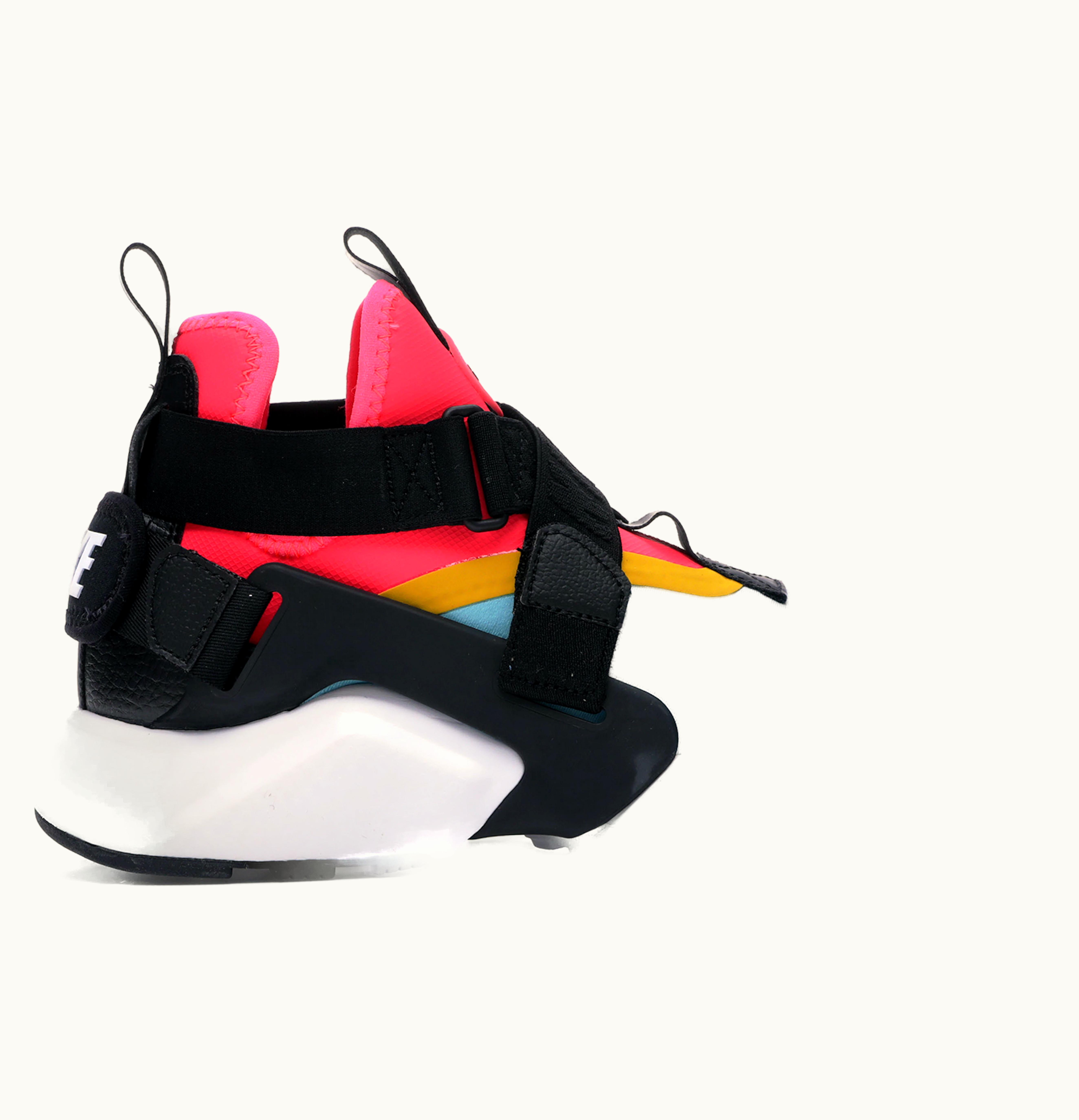The Nike Air Huarache City Multi-Color (W) is a unique and stylish women's sneaker designed to provide unparalleled comfort and support. The shoe features a multi-color upper with a mix of black, pink, blue, and yellow, creating a bold and eye-catching look. The upper is constructed from a mix of synthetic leather, neoprene, and mesh materials, ensuring a durable and breathable fit. The Huarache's classic bootie construction enhances comfort, while the adjustable strap provides a secure and customizable fit. The midsole of the Air Huarache City is made up of a combination of foam and Nike Air cushioning, providing superior support and shock absorption for maximum comfort during long periods of wear. The outsole is made from durable rubber, ensuring excellent traction and durability on any surface. Overall, the Nike Air Huarache City Multi-Color (W) combines style, comfort, and performance to create the ideal sneaker for all-day wear.