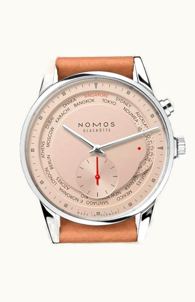Nomos Glashütte Zürich Weltzeit Red Dot Salmon 805.S7 | GLINT