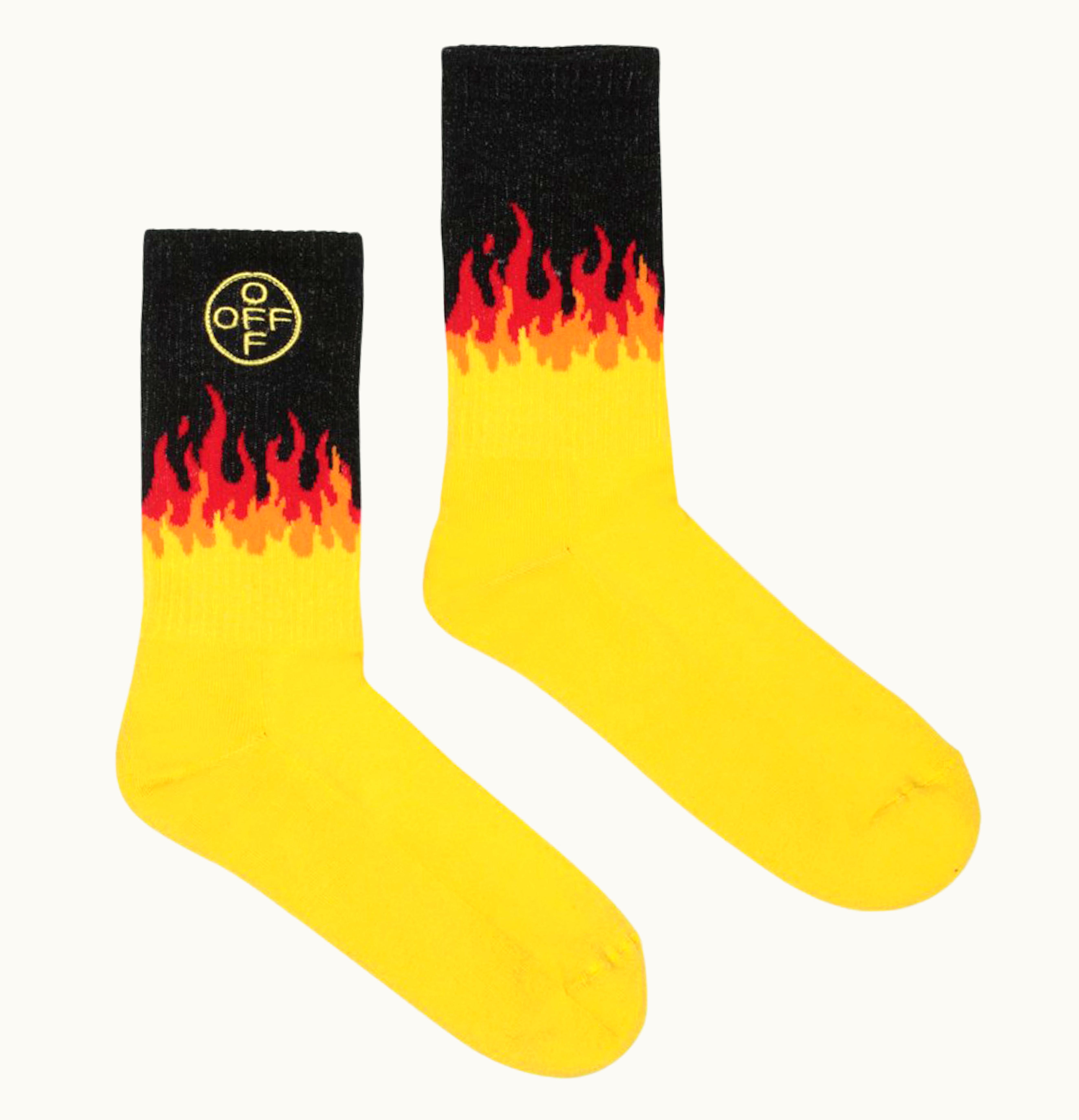 OFF WHITE Crossed Flamed Socks Black Yellow Red | GLINT