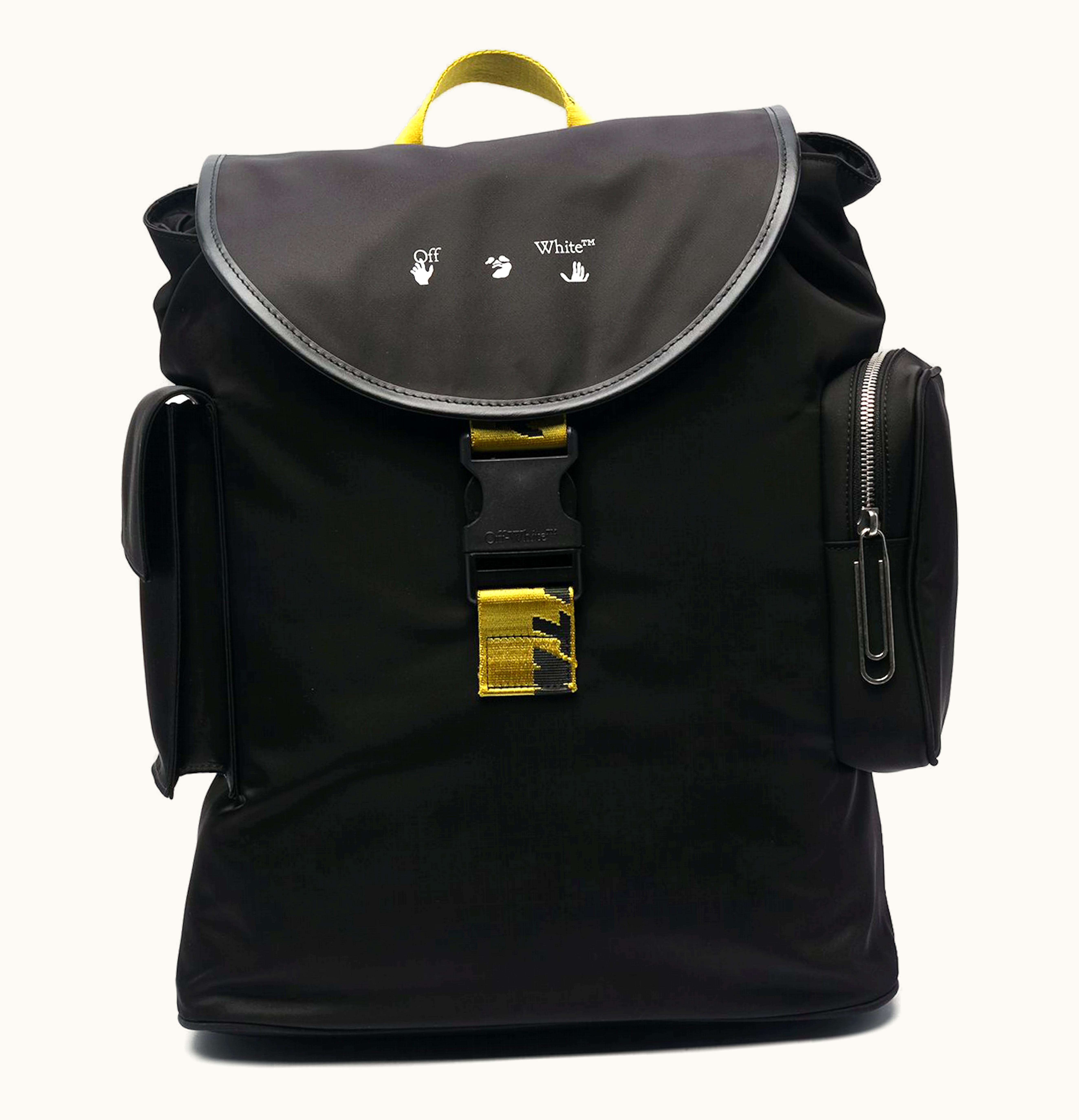 OFF WHITE Logo Print Foldover Top Backpack Black Yellow | GLINT