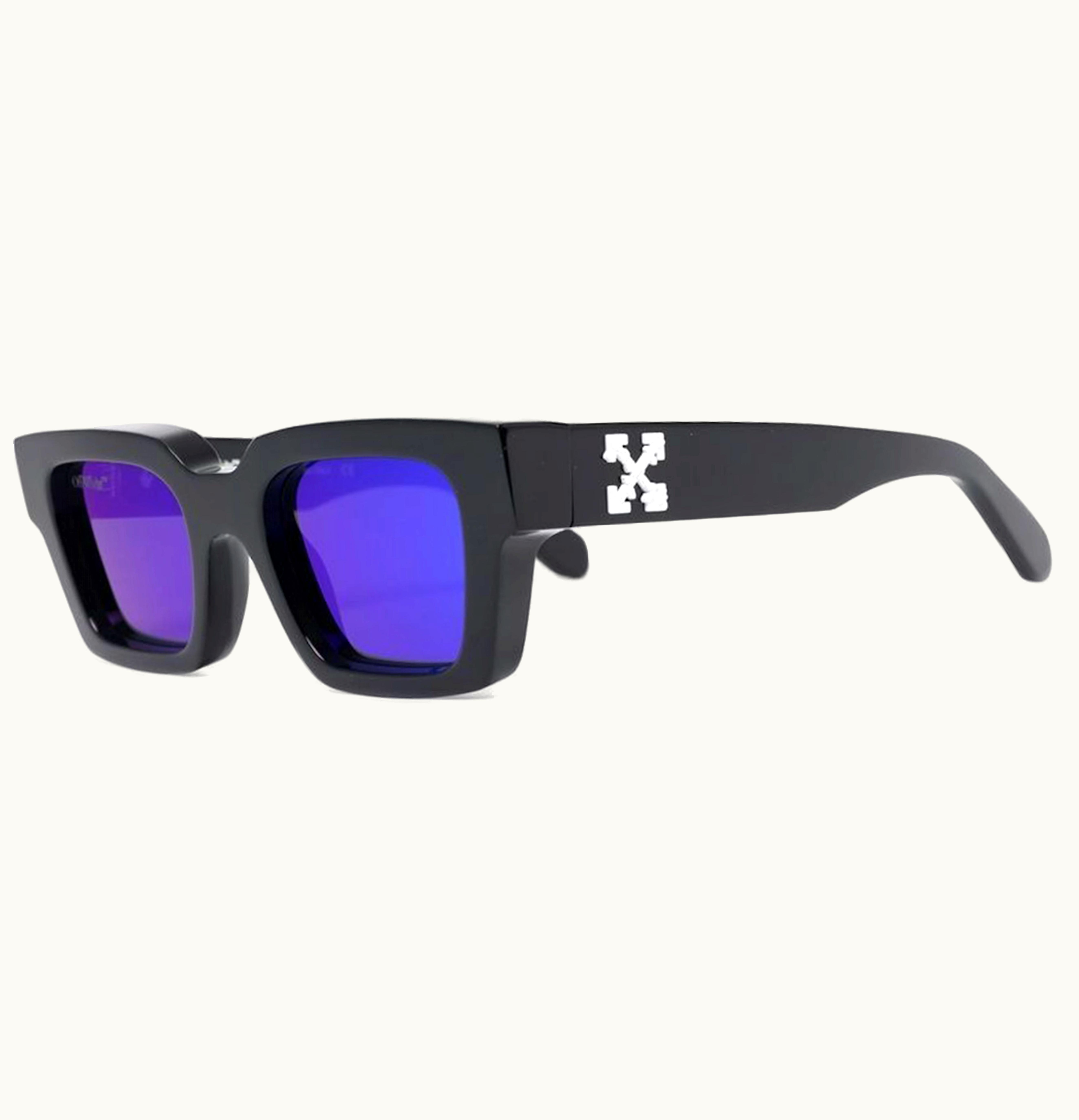 OFF WHITE Virgil Rectangle Frame Sunglasses Black White Blue | GLINT