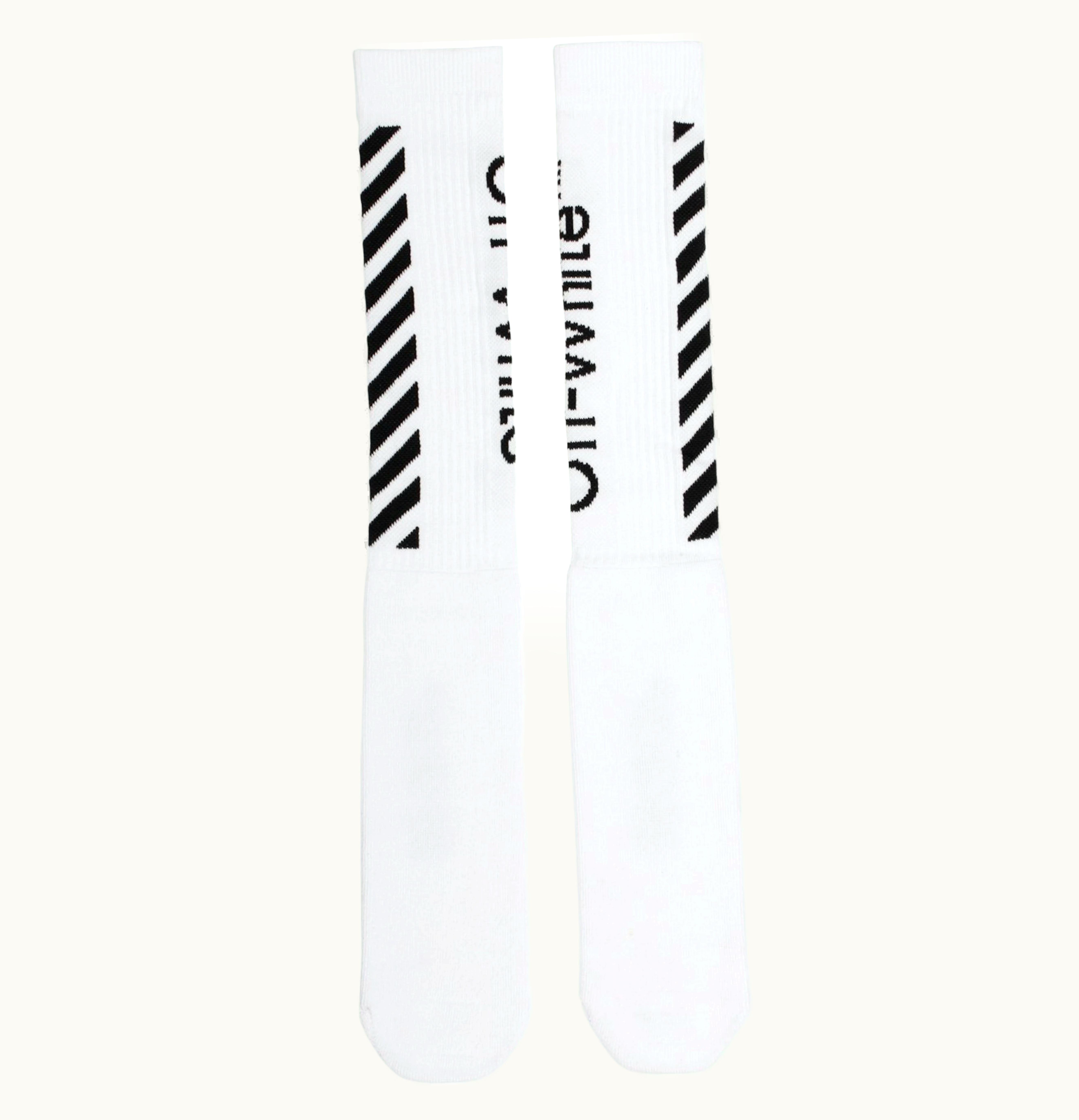 OFF WHITE Diag Logo Intarsia Stretch Socks White Black | GLINT