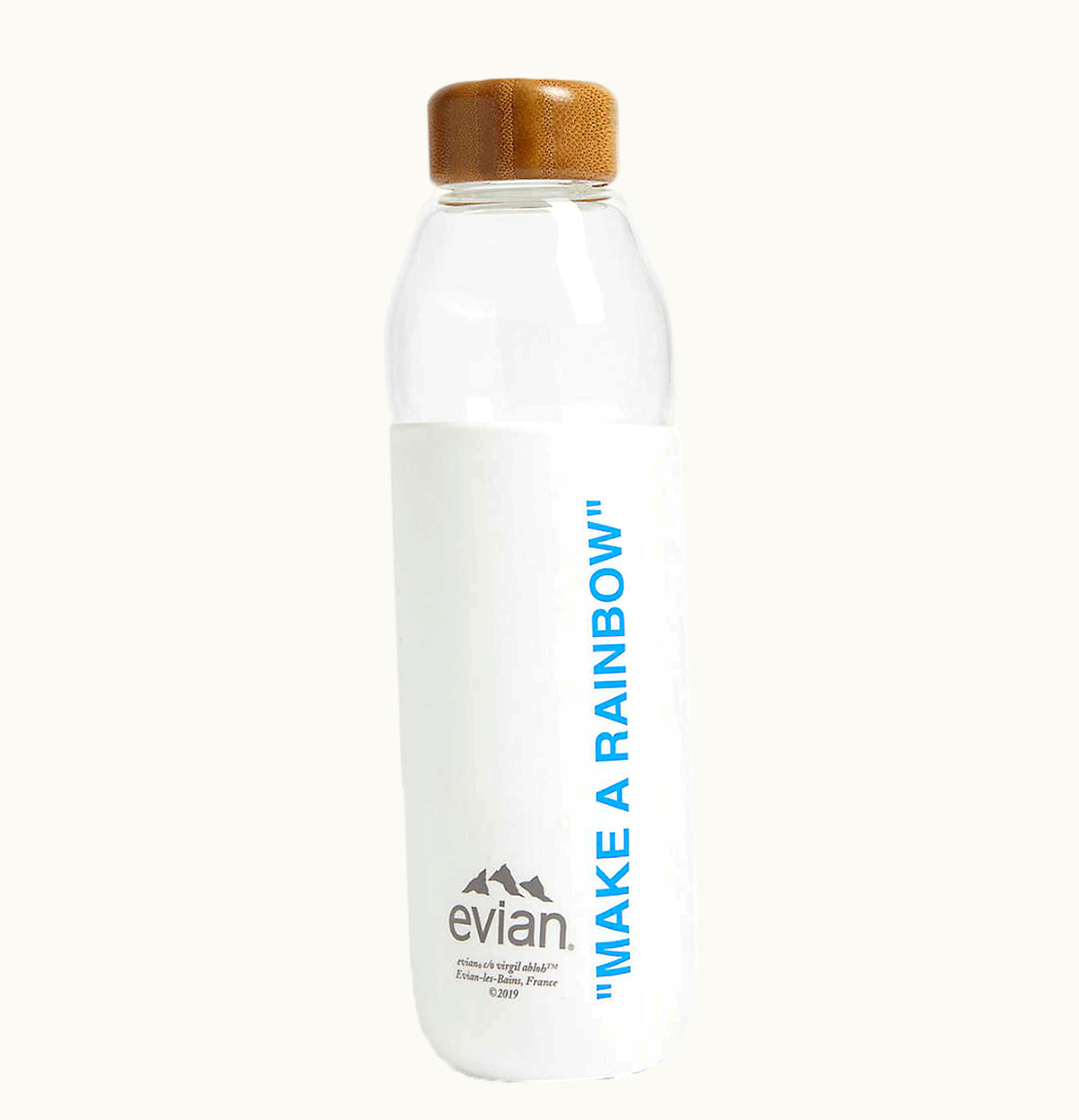 EVIAN BY VIRGIL ABLOH x SOMA Make A Rainbow Refillable Glass Water Bottle White Light Blue | GLINT