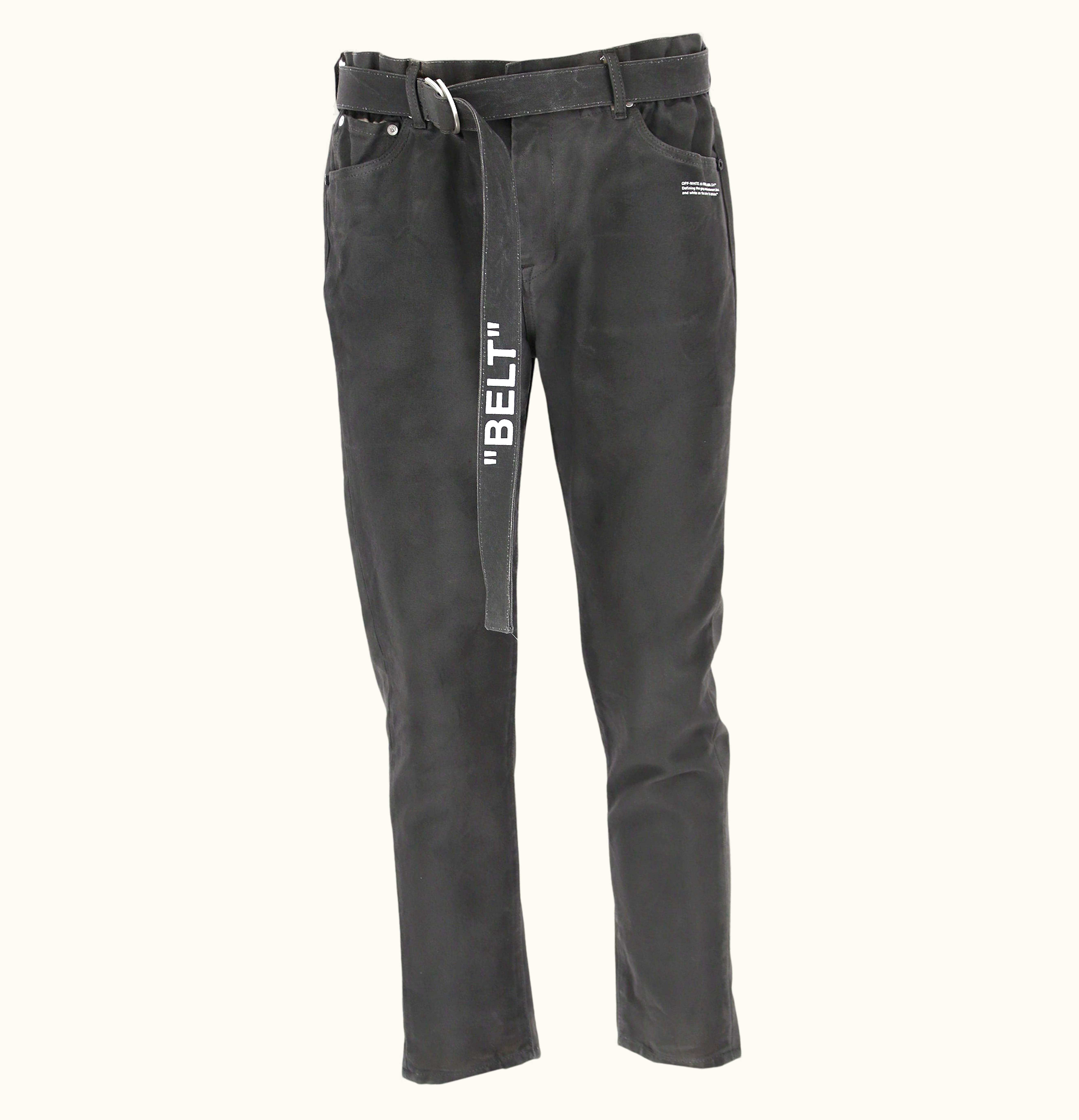 OFF WHITE Belted Low Crotch Denim Jeans Grey White | GLINT