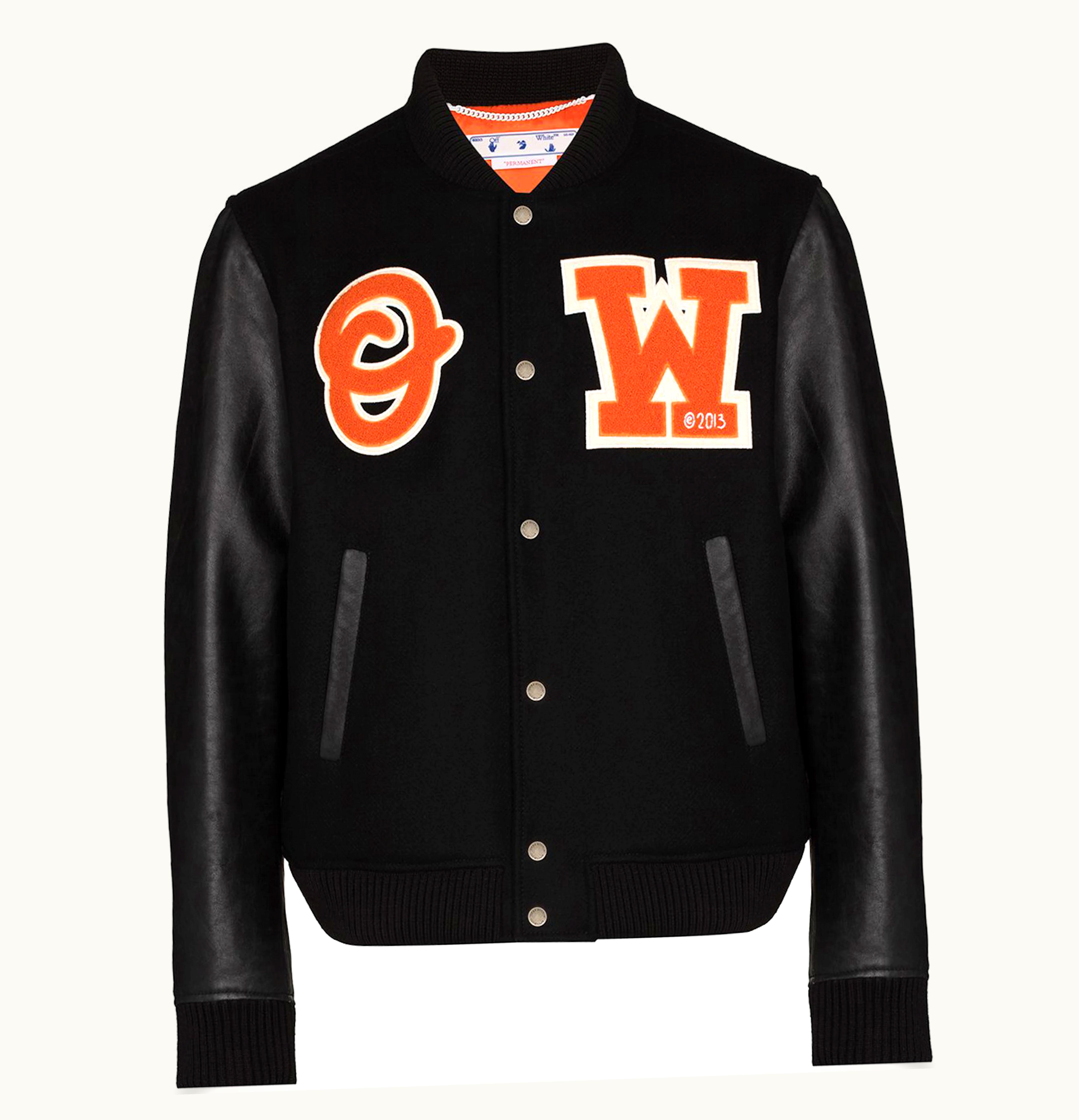 OFF WHITE Logo Patch Varsity Jacket Black Orange | GLINT