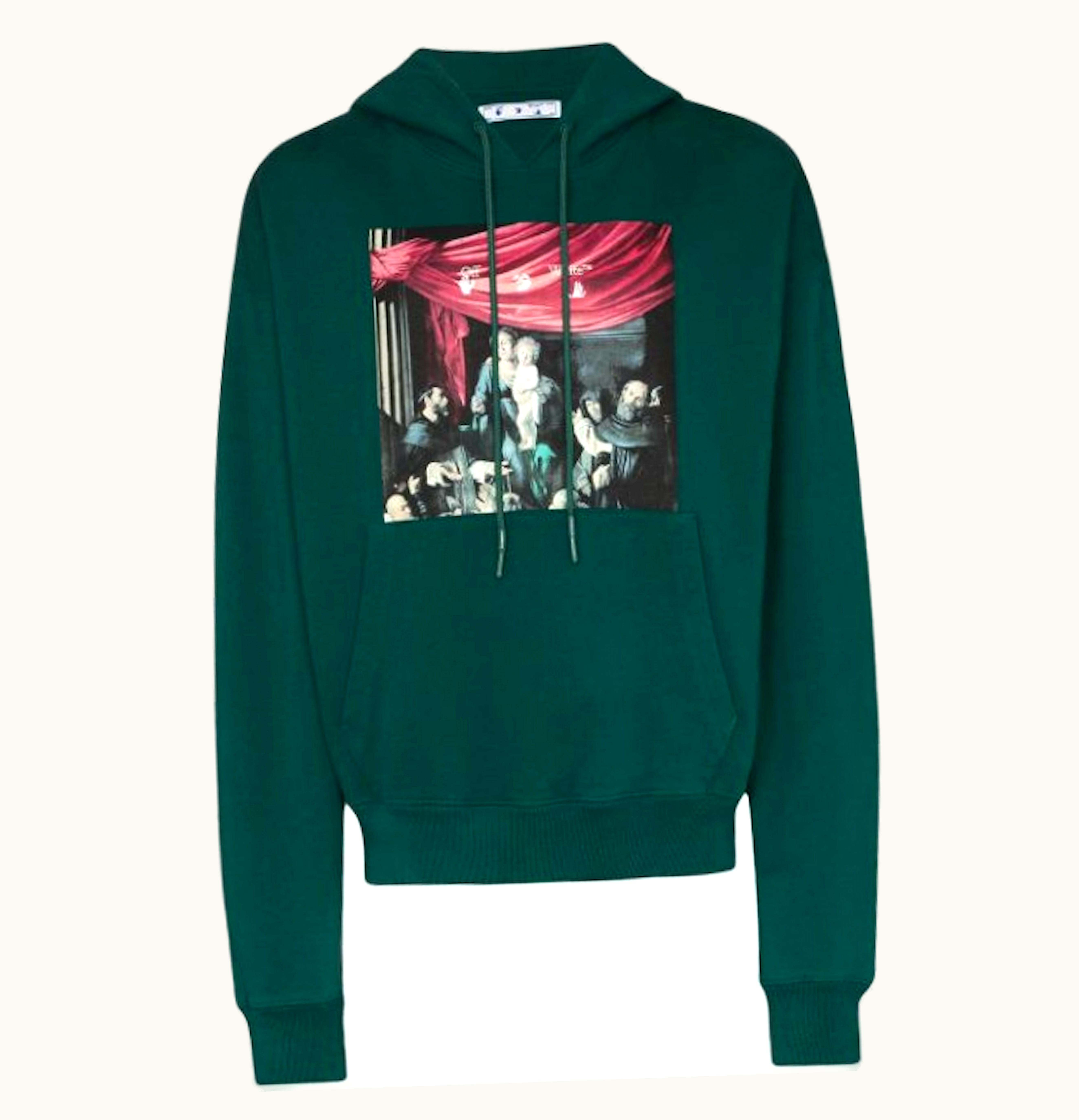 OFF WHITE Oversize Fit Caravaggio Painting Hoodie Dark Green Black | GLINT