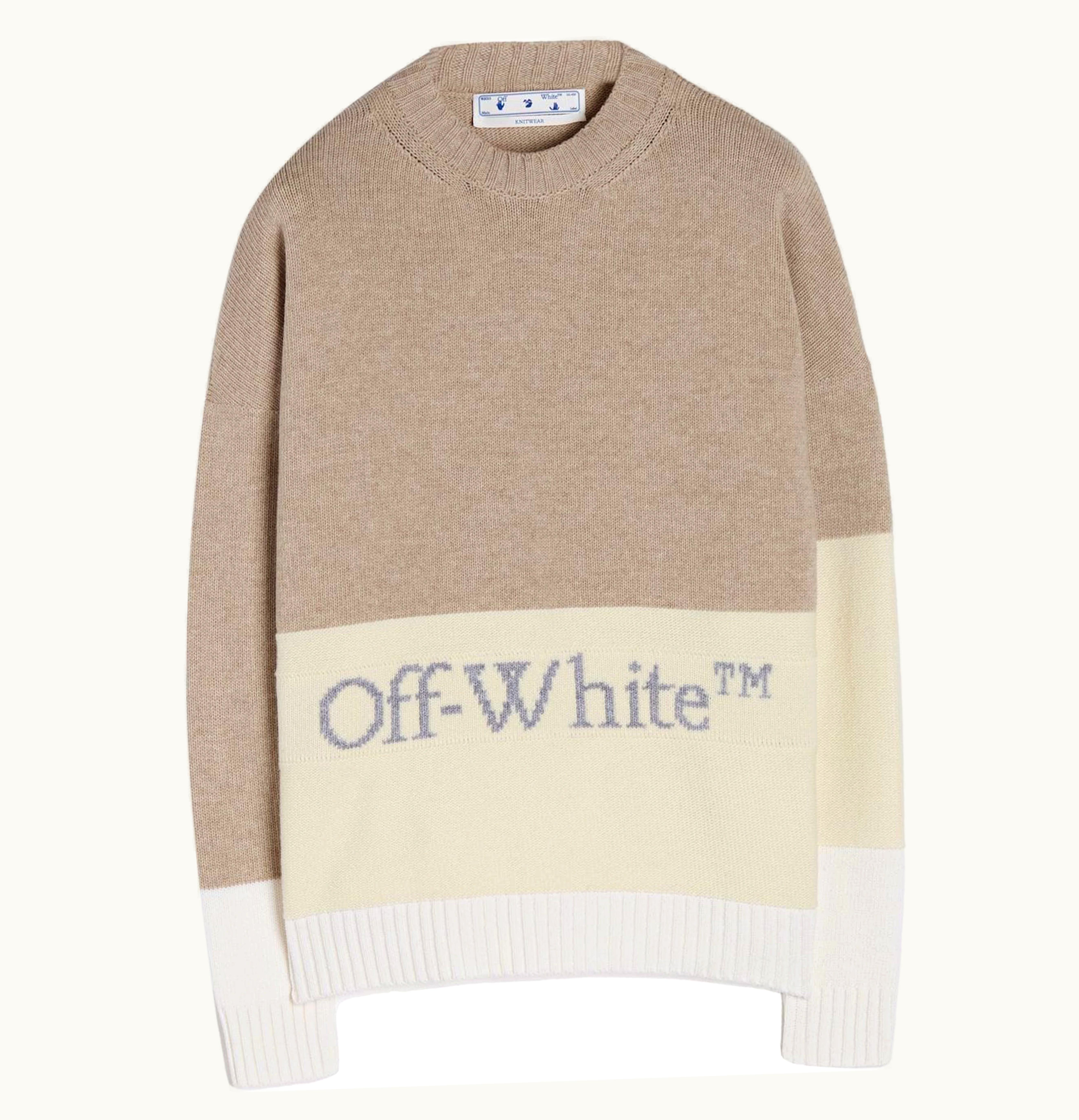 OFF WHITE Colour Block Knitted Crewneck Beige Natural White | GLINT