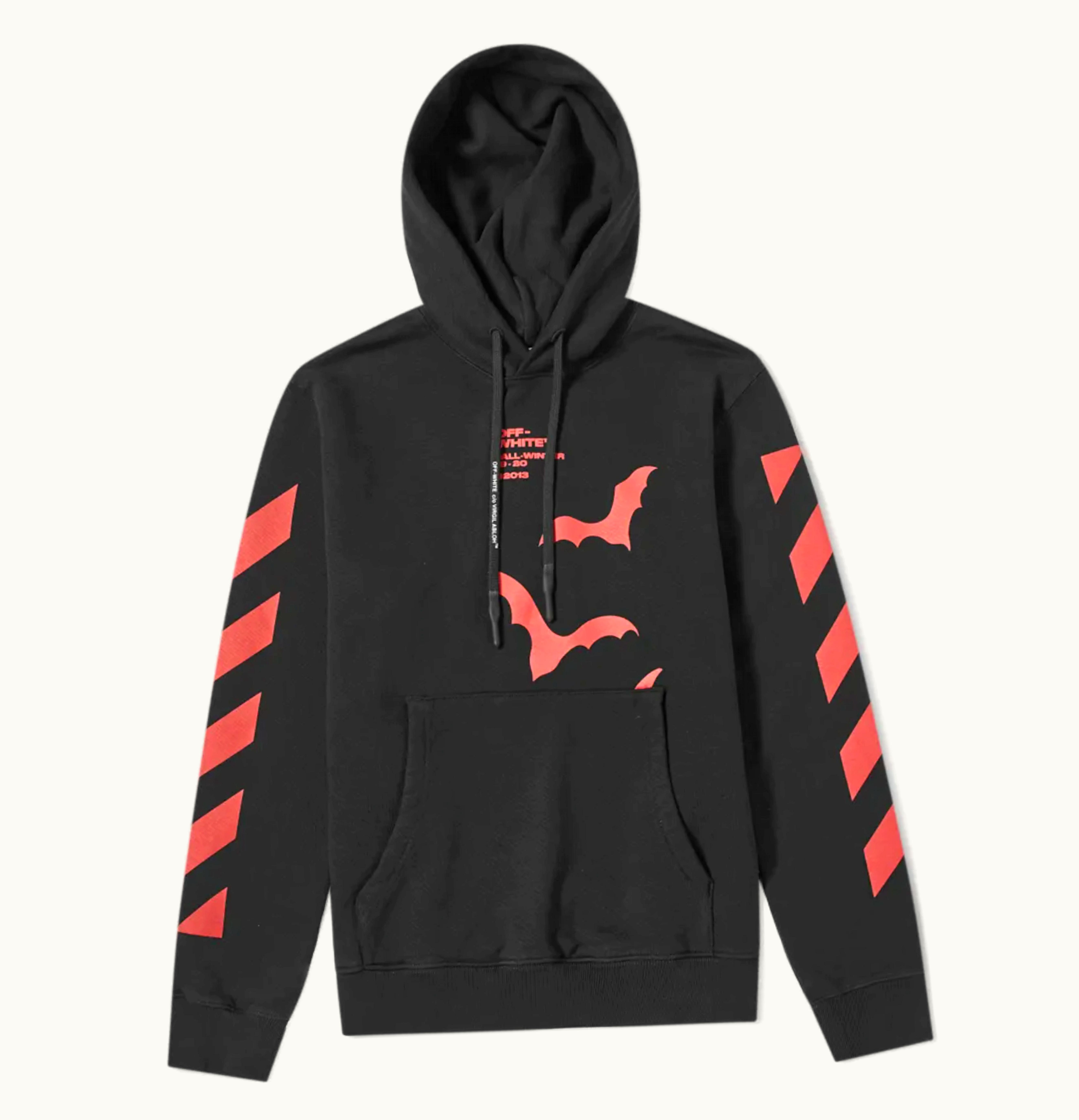 OFF WHITE Diagonal Sleeve Bats Slim Fit Hoodie Black Red | GLINT