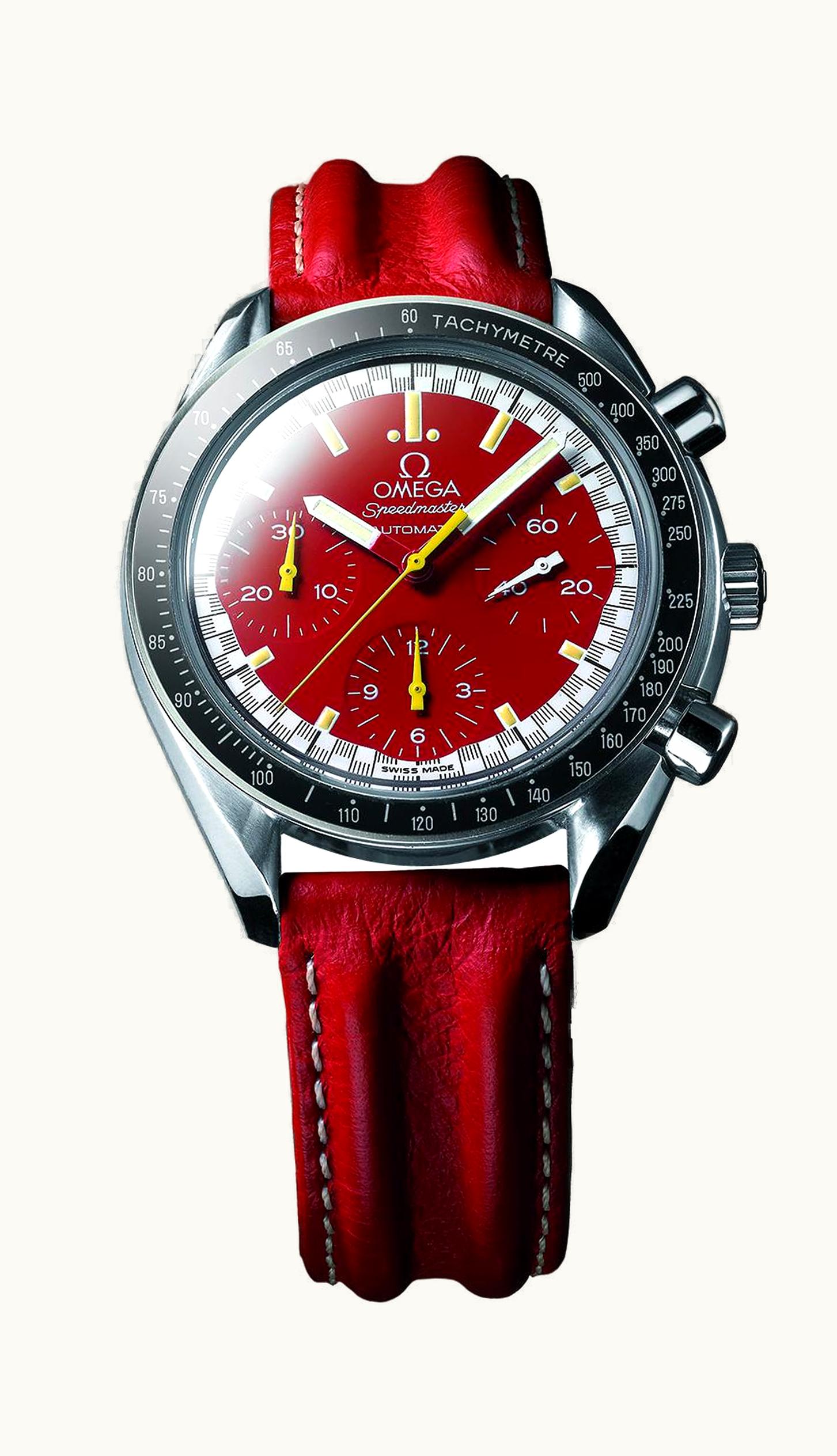 Omega Speedmaster Reduced Stainless Steel / Red / Strap / Schumacher 3810.61.41 | GLINT