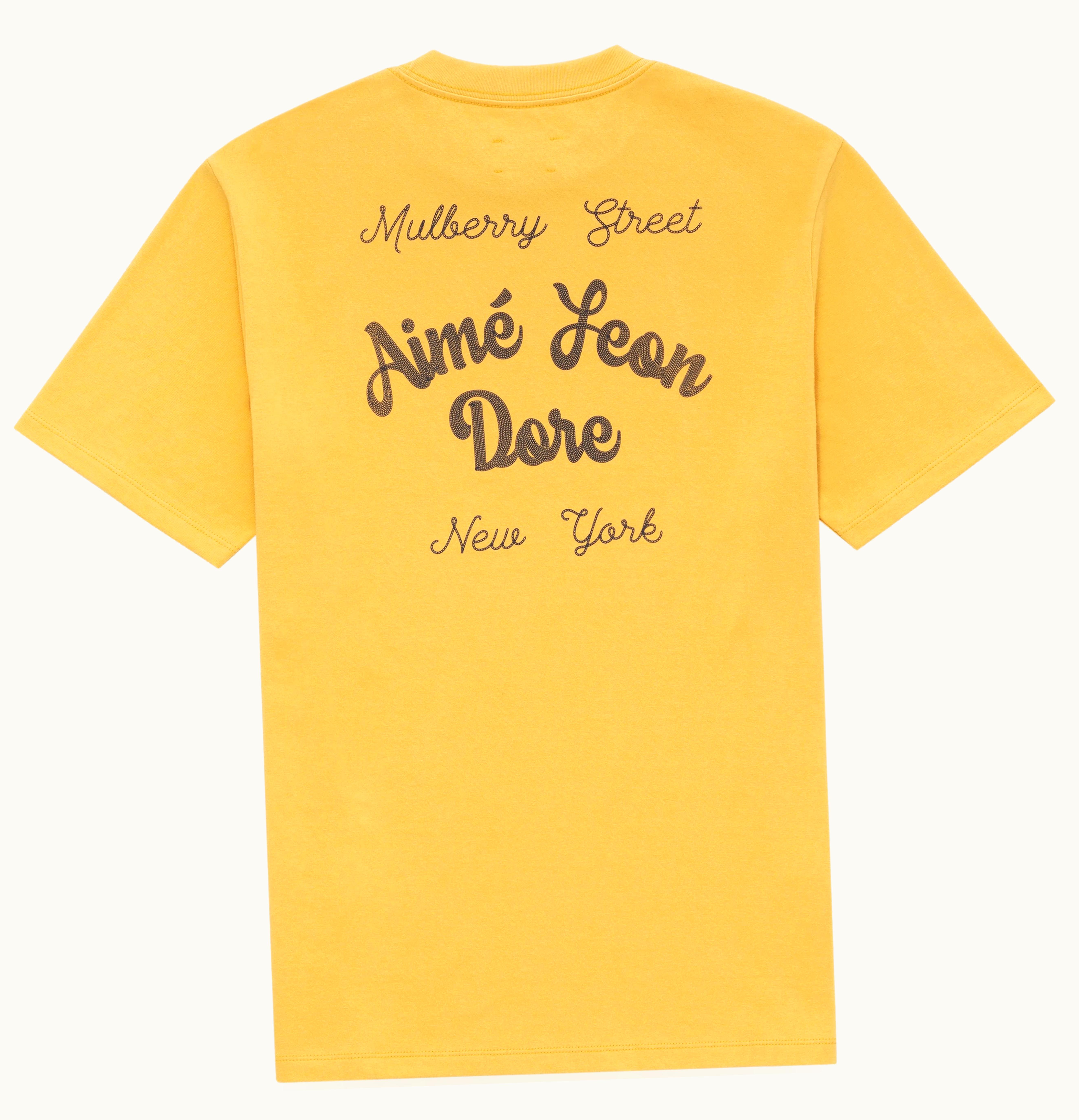 Aime Leon Dore Printed Chain Stitch is a high-quality, premium, black cotton t-shirt that features a unique printed chain stitch design on the chest and back. The design consists of vibrant, colorful, intricate and detailed embroidery in white, green, blue, pink and yellow floral patterns. The embroidery has a 3D effect and is made using chain stitches, providing a textured finish. The t-shirt is made of 100% cotton and has a comfortable, relaxed fit with a crewneck collar and short sleeves. It is designed with a ribbed neckline, hem and cuffs that provide a classic finish. This Aime Leon Dore Printed Chain Stitch t-shirt is perfect for adding a touch of sophistication to an everyday outfit, as well as adding a pop of color to any look. It is ideal for casual outings, summer parties, or for leisurely strolls through the city.