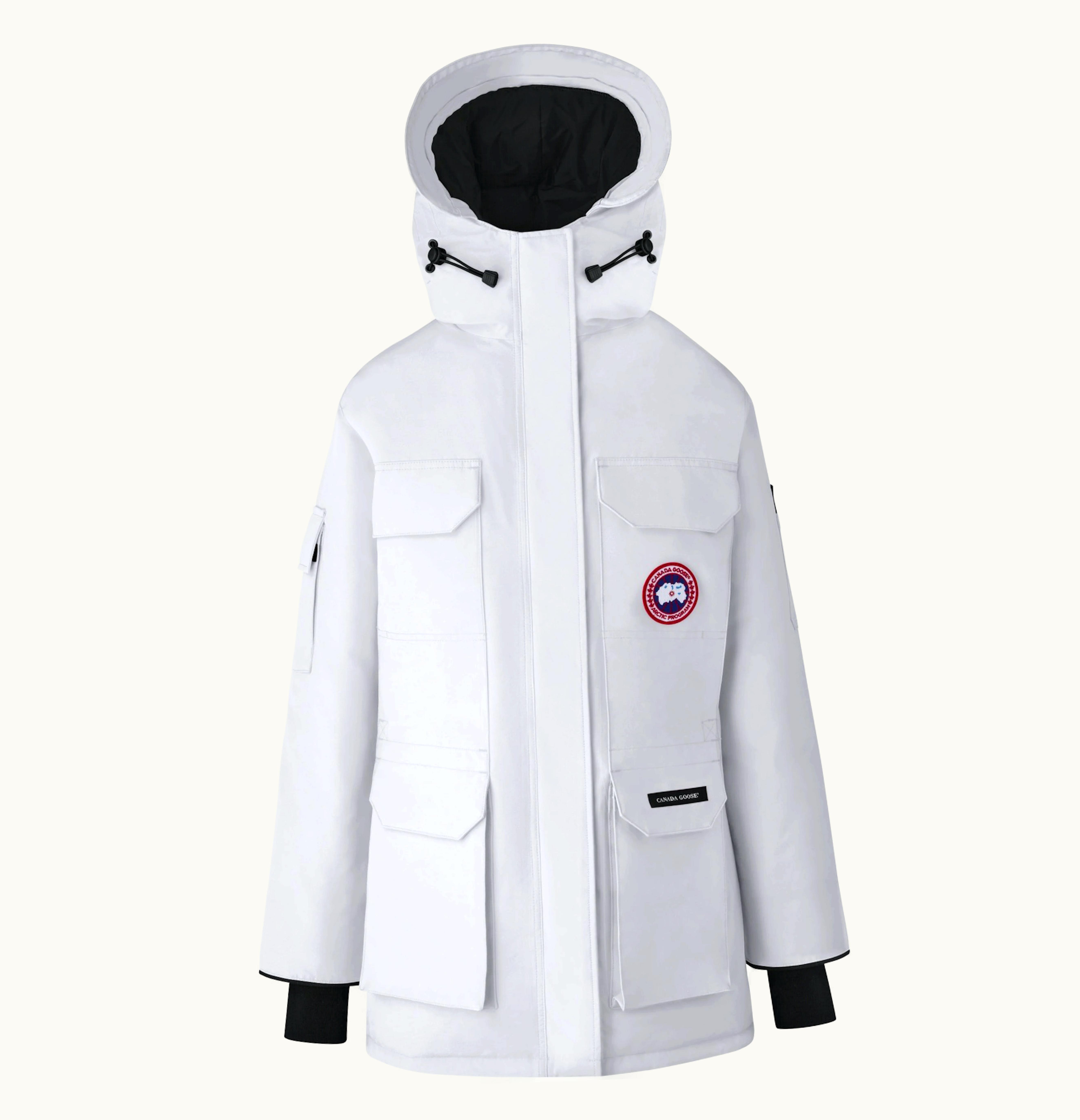 The Canada Goose Women's Expedition Heritage Parka is the ultimate cold weather essential for women. Made from durable and water-resistant Arctic Tech fabric, this parka is designed to keep you warm in extreme weather conditions with its premium goose down insulation and heavy-duty, rib-knit cuffs and waistband. The parka features a mid-thigh length and a removable coyote fur ruff on the hood that provides additional warmth and protection against wind and snow. The hood is adjustable and comes with a fleece-lined chin guard for added comfort. Other features of the Expedition Heritage Parka include a double-layered reinforced elbow, four exterior pockets for storage and easy access to essentials, and an interior zippered pocket to keep your phone, keys or wallet safe. This parka is designed for a slim fit and is available in multiple colors to suit different tastes and preferences. It is perfect for outdoor activities such as hiking, skiing, and snowshoeing. Whether you're braving the cold in the city or exploring the great outdoors, the Canada Goose Women's Expedition Heritage Parka has got you covered.