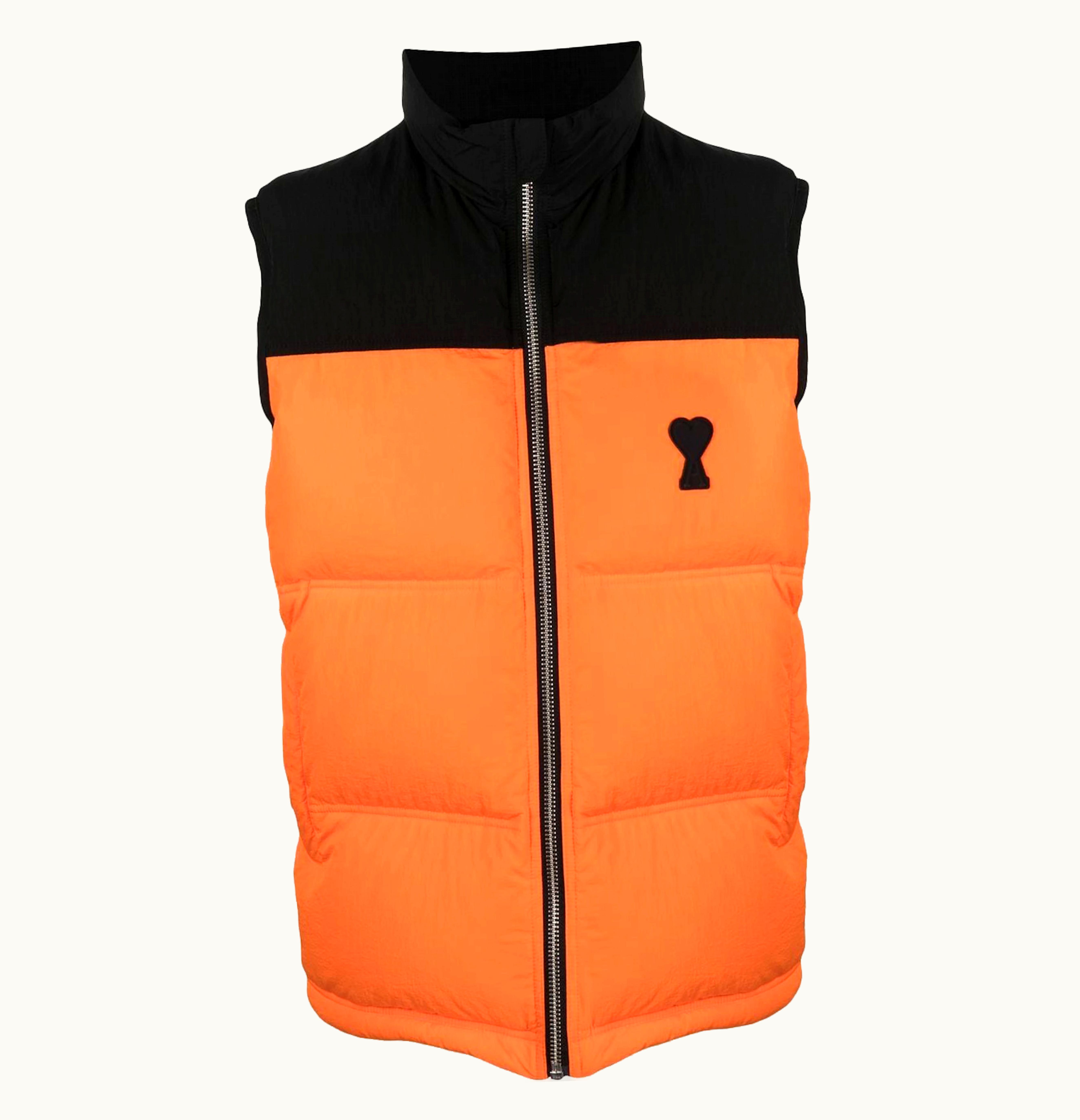 AMI Paris Chest Logo Print Padded Jacket Black Orange | GLINT