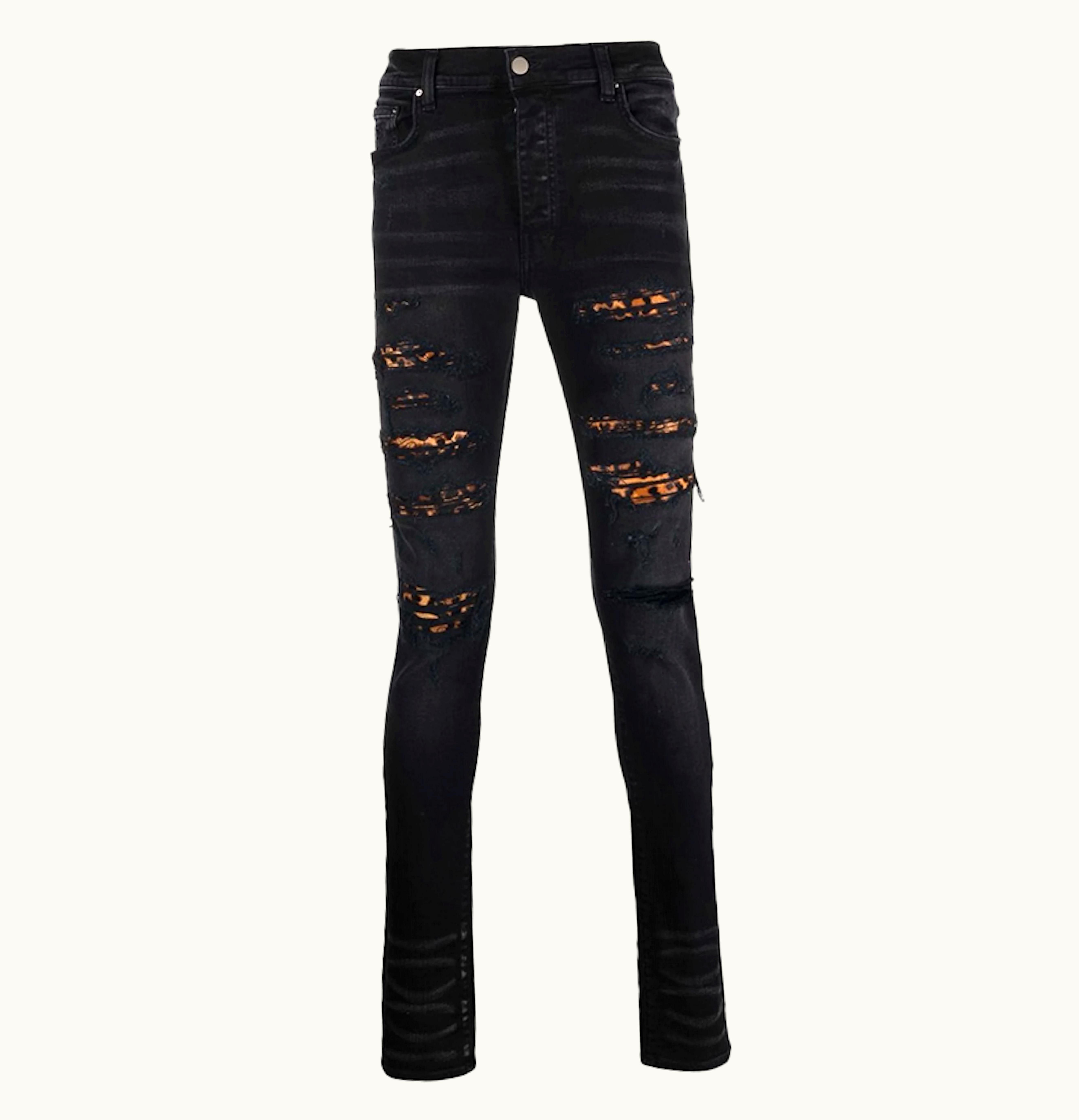 AMIRI MX1 Mid Rise Skinny Jeans Black Leopard Print | GLINT