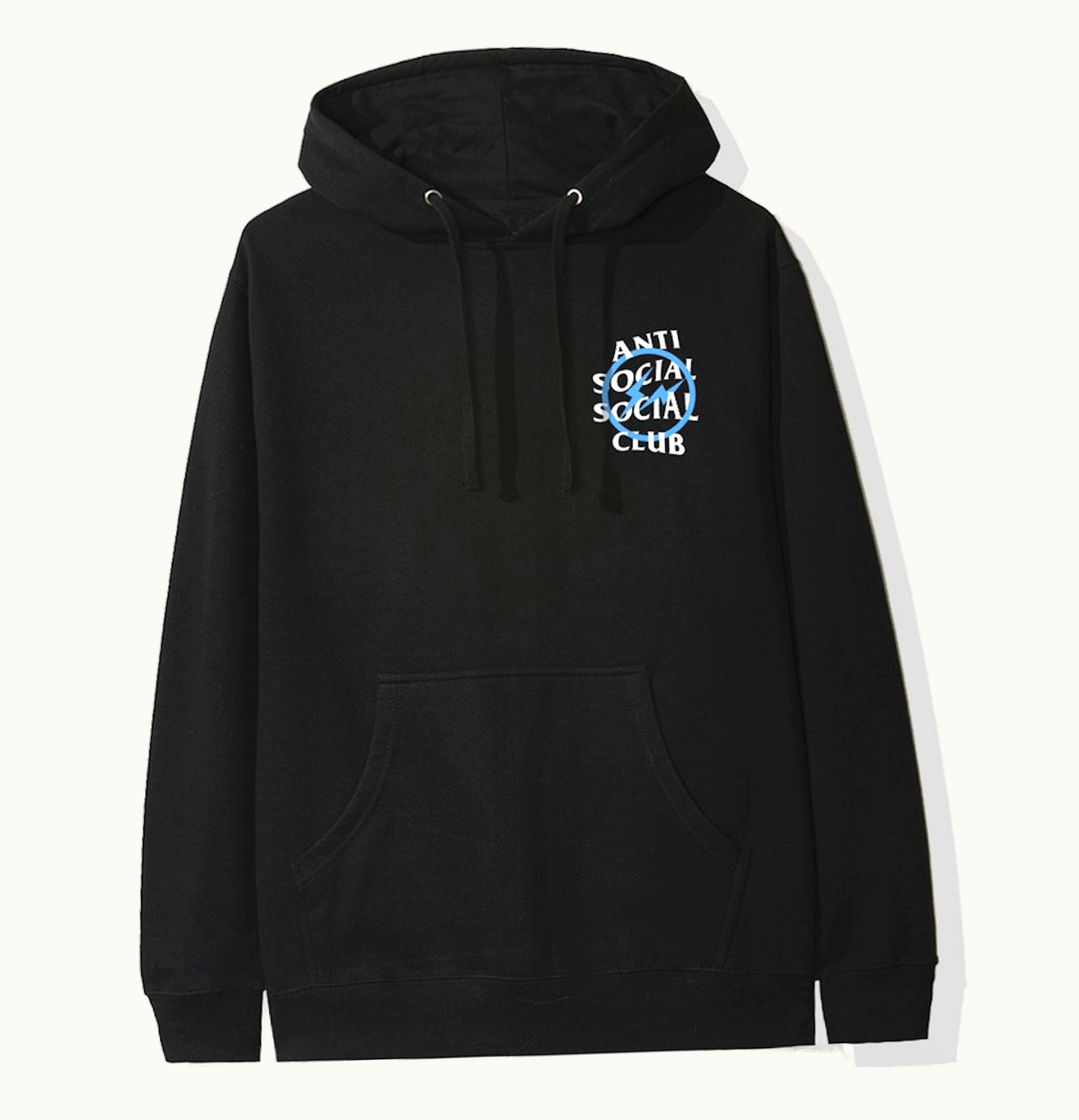 To sell your apparel item, it is necessary to attach the original NFC enabled retail tag. This FW19 Anti Social Social Club hoodie, designed in collaboration with Fragment Design, showcases a fusion of both brands' logos. The Fragment logo is placed on top in certain areas while in others, the Anti Social Social Club logo takes over its counterpart. The two brand marks are presented as equals, engaging in a visual dance. The Anti Social Social Club x Fragment Blue Bolt Hoodie was originally priced at $89 USD and is now available on GLINT instead of GLINT.