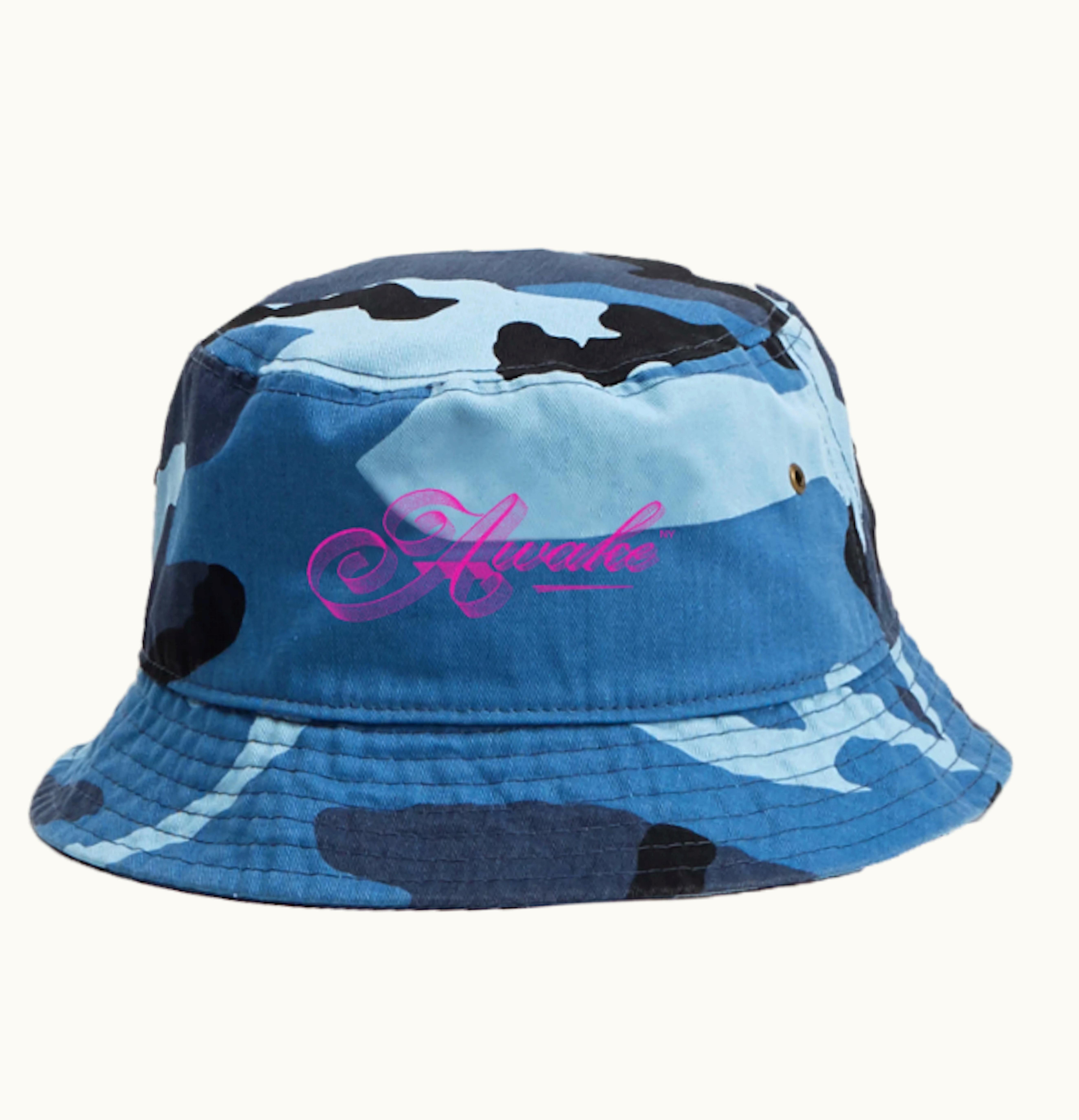 Awake Ribbon Script Logo Bucket Hat Blue Camo | GLINT
