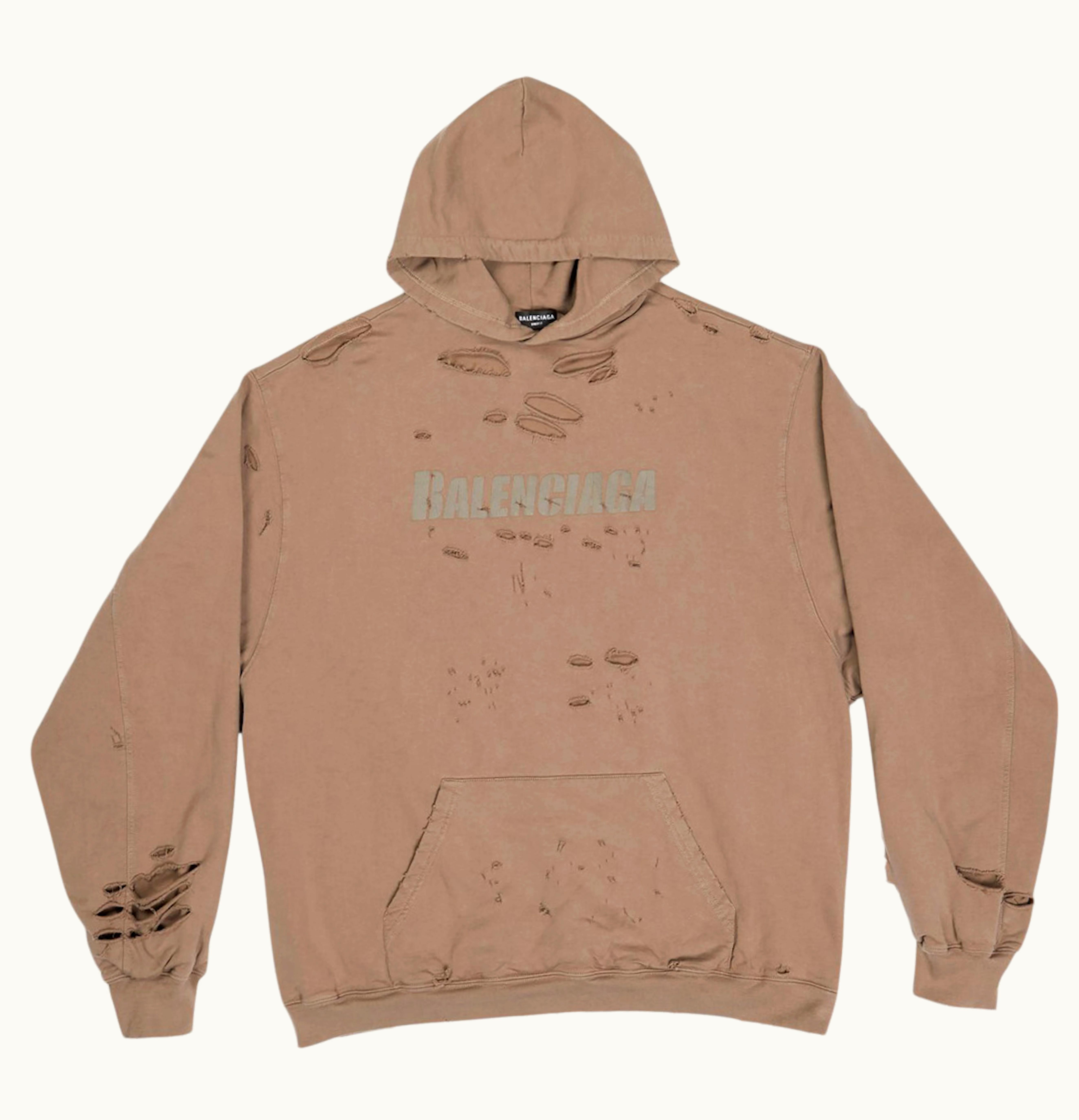 Balenciaga Caps Destroyed Oversize Fit Hoodie Dark Beige Khaki | GLINT