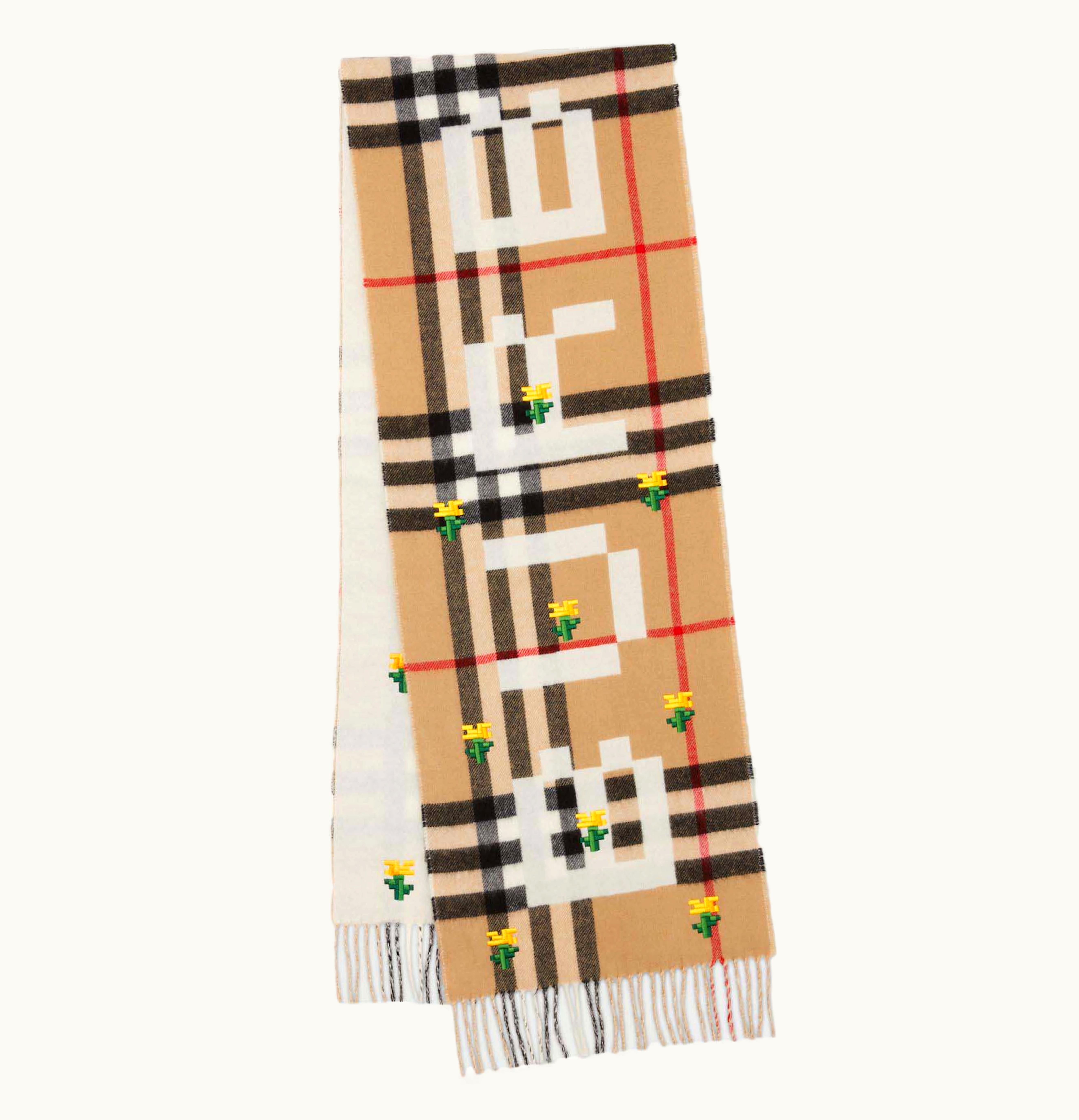 Burberry x Minecraft Logo and Check Cashmere Scarf Archive Beige | GLINT