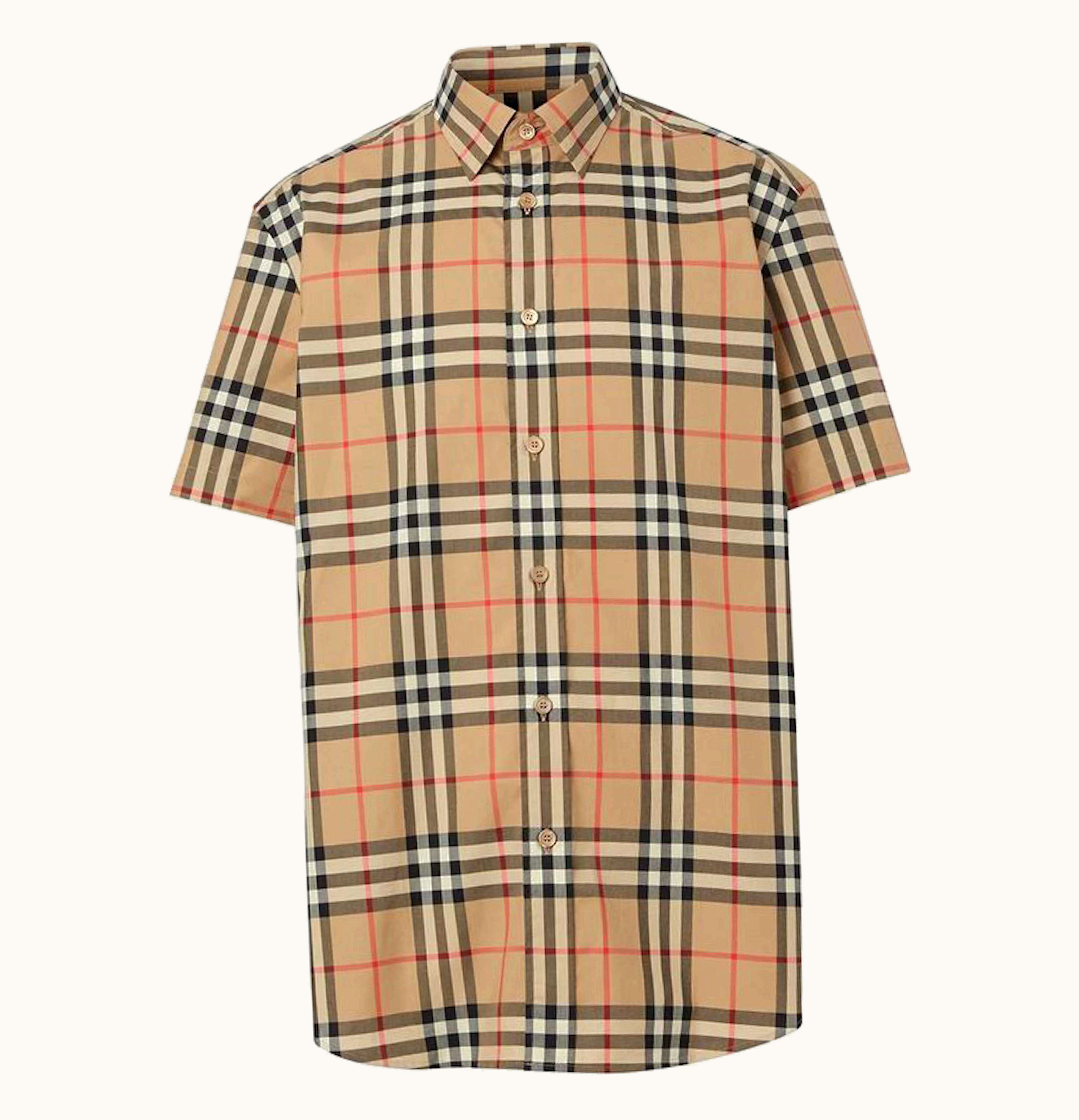 Burberry S S Check Cotton Shirt Beige | GLINT