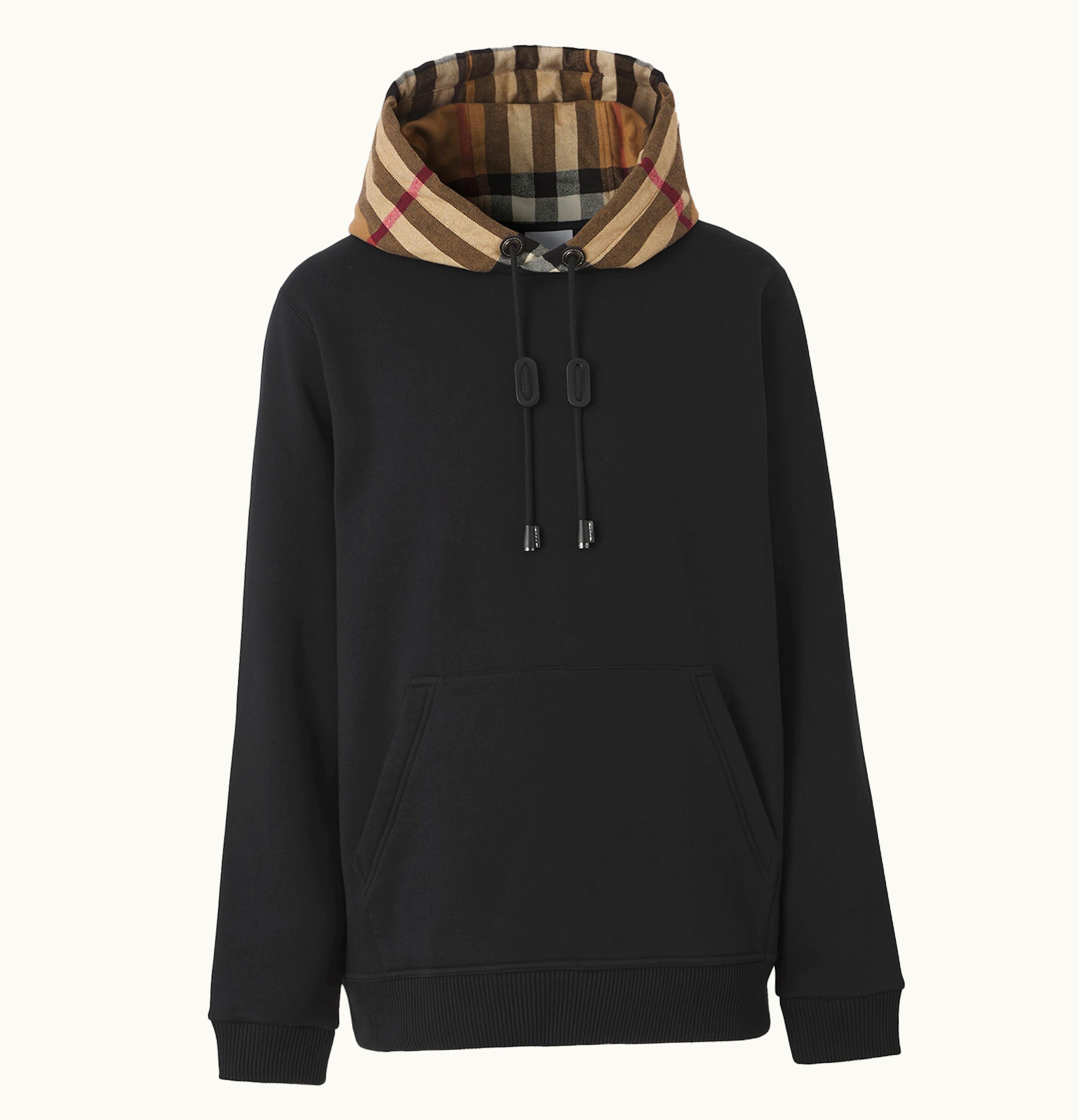 Burberry Check Hood Cotton Blend Hooded Sweatshirt Black Beige | GLINT