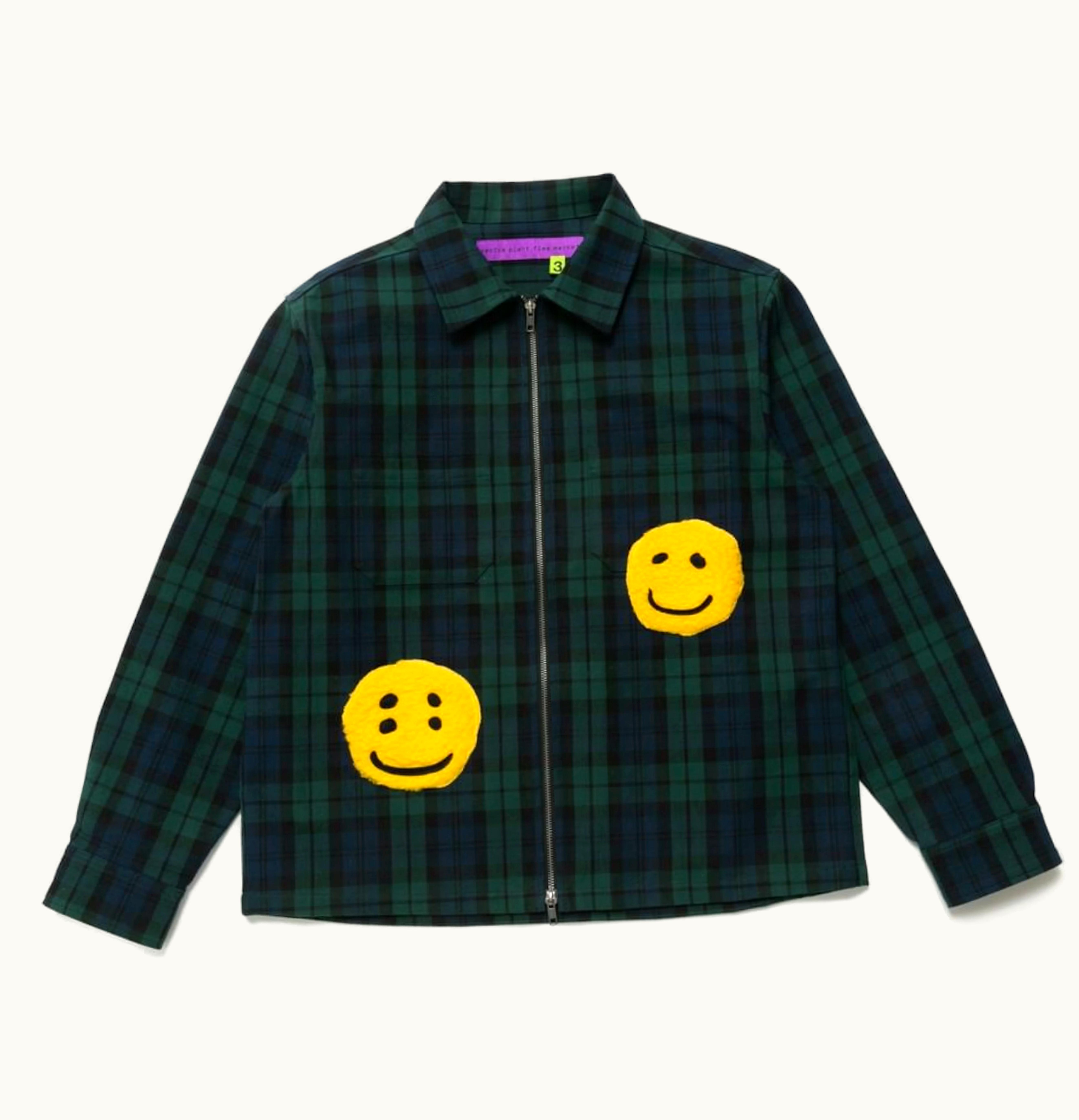 Cactus Plant Flea Market Check Zip Work Jacket Navy Green | GLINT