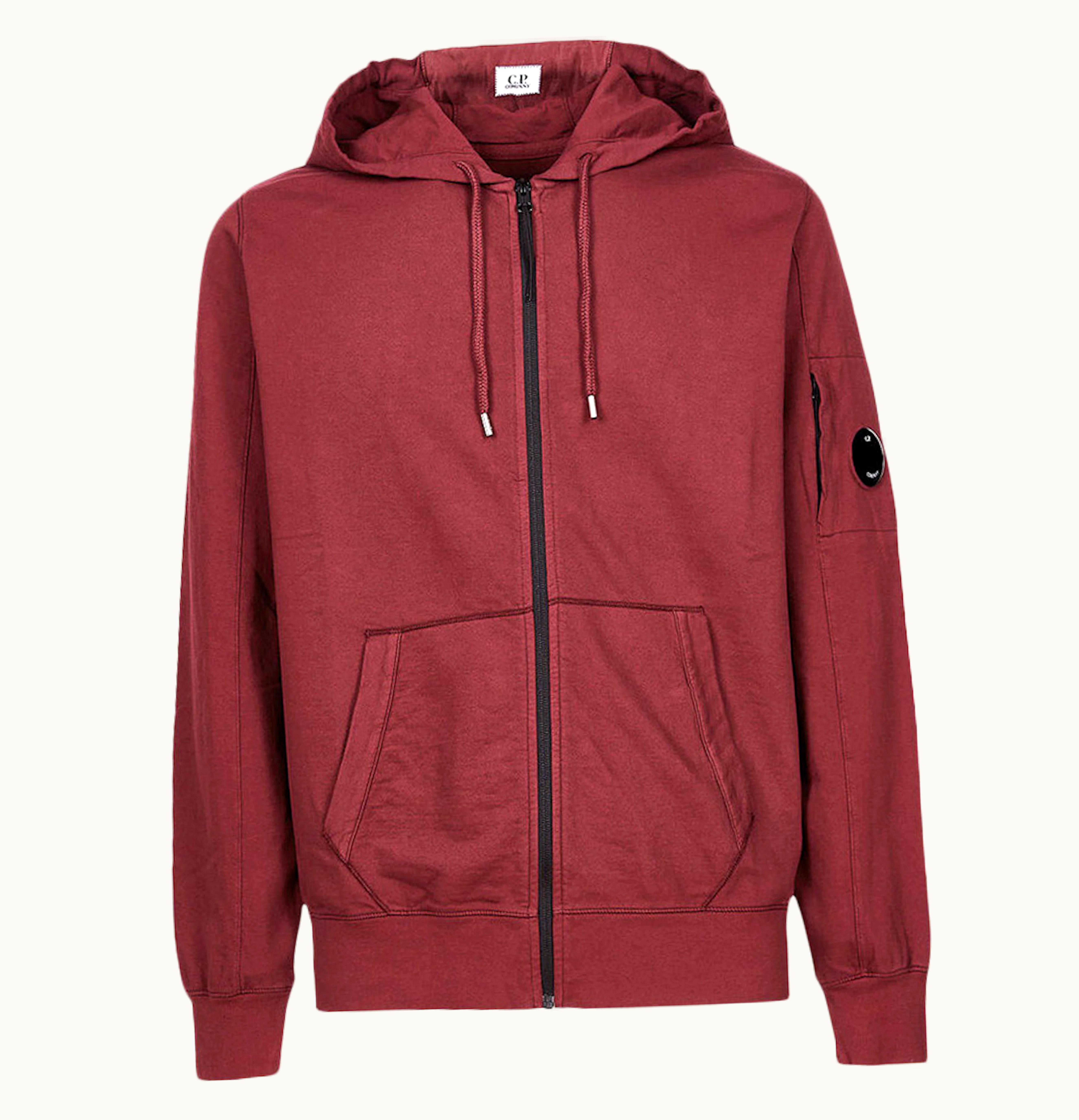 CP Company Light Fleece Zipped Hoodie Port Royal Red | GLINT